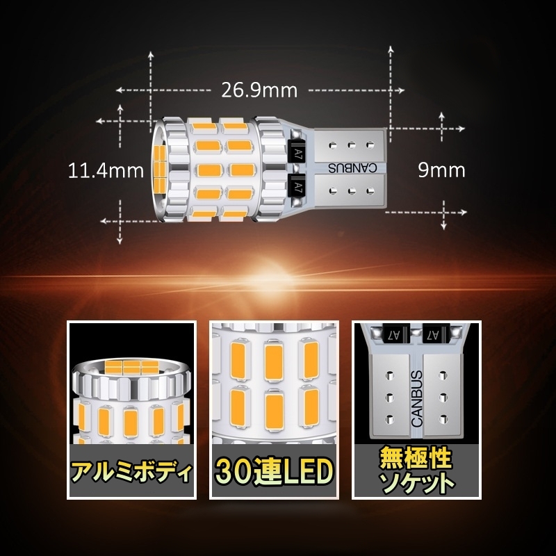 | 商品内容 LEDサイドウィンカーバルブ 2個セット 仕様 発光色:アンバー ソケット形状:T10 動作電圧:12V LED数:30個 全長:26.9mm 全幅:11.4mm 差込幅:9mm 対応車種 メーカー:トヨタ 車種:セプター 型式:VCV/SXV10系 年式:H4.9~H6.9 |