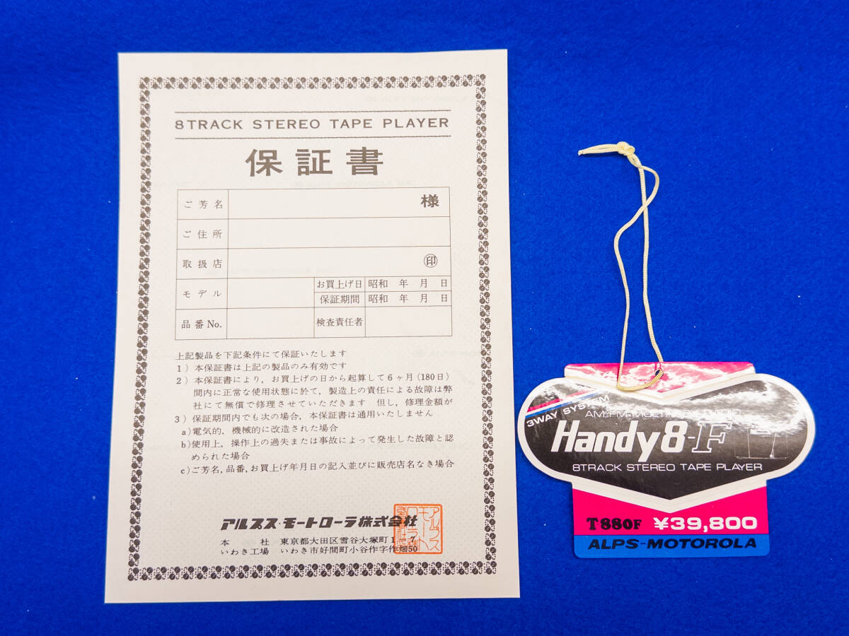 【スマートフォンでご覧の方へ】「商品詳細を見る」をタップして詳細をご確認ください。| 3Q売切!税無し◇アルプス・モトローラ 8トラデッキ ハンディ8-F T-880F 取扱説明書★1970年代★検アルパイン★★0429-5 |