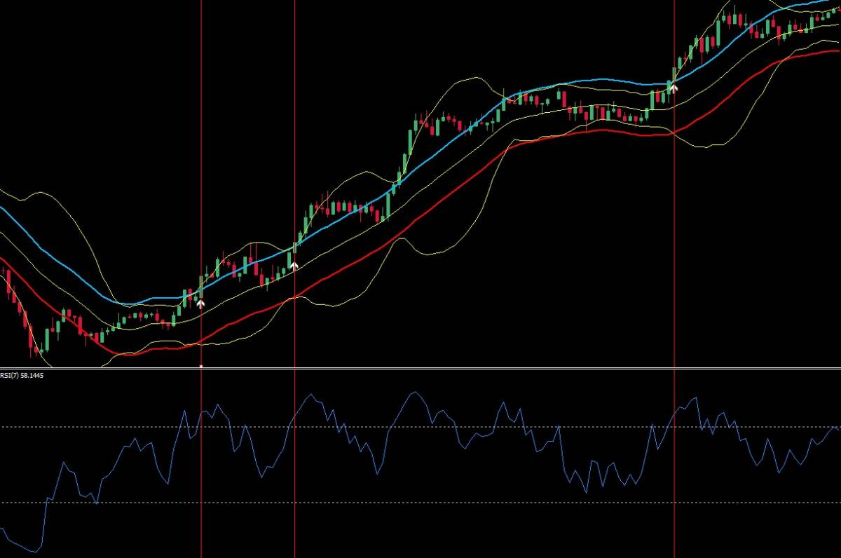 エンベロープ + ボリンジャーバンド + RSI 順張り手法