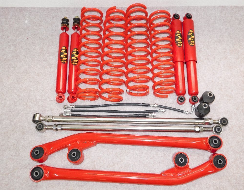 | 商品説明 | ジムニーJB23用33,43用 5インチオールラウンドスプリング ステンレスラテラルロッド リーディングアーム リアキャスター角補正ブッシュ ロングブレーキホース フロントプロペラシャフトスペーサー トランスファーマウント ロングショックのセットです 日本製 業販などお問い合わせ 0774-43-7408黒川まで 強度計算書もございますが 構造変更不要、車検対応の商品です 送料無料 北海道¥2000 沖縄離島¥3000かかります |