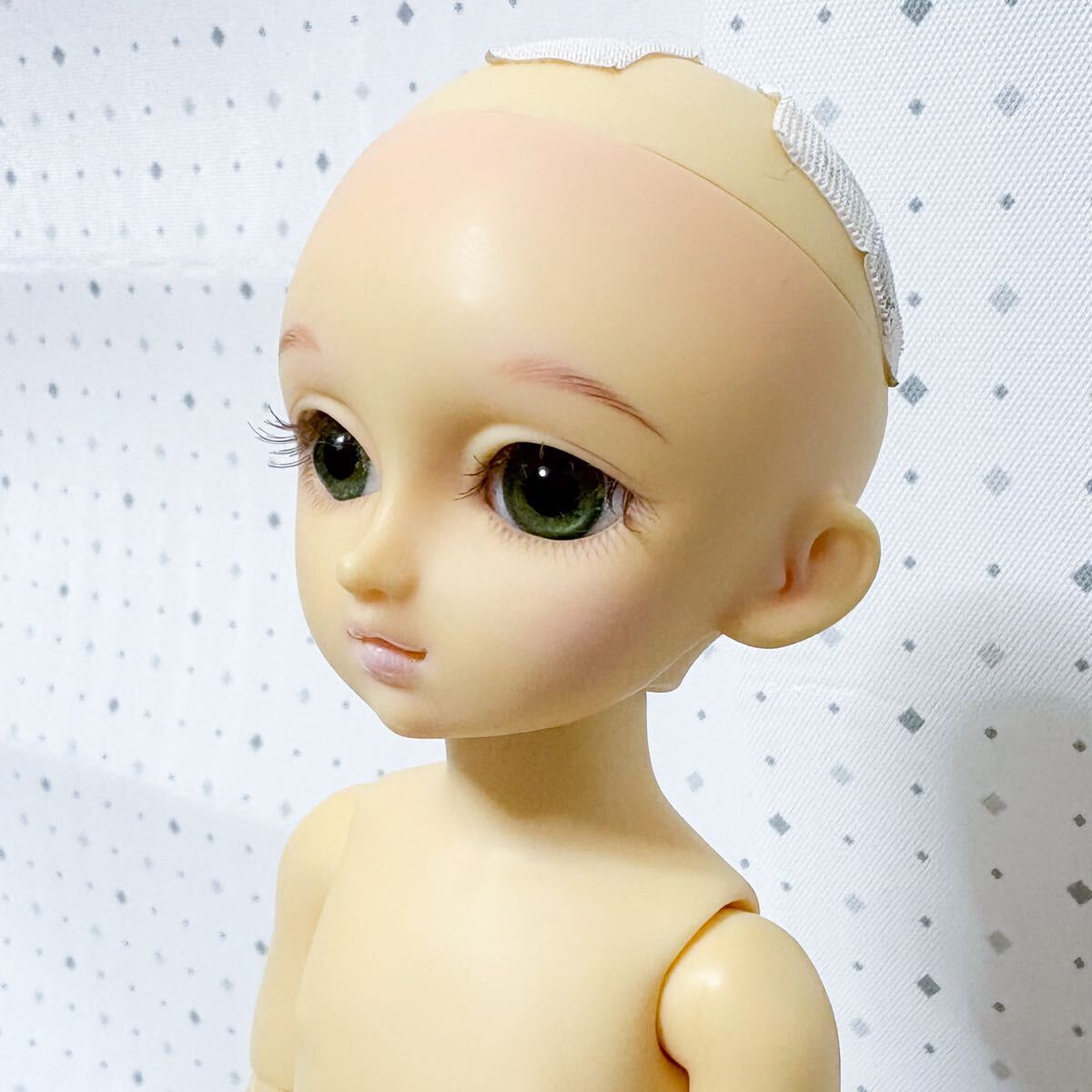 幼天使 霞 2006.3.18 天使の里 開設二周年記念フェア 約20年前の子と考えれば綺麗な方だとは思いますが、経年による黄変はあります。リップメイクは褪色して淡いピンクになっています。テンションゴムはバランスを取れば立てる程度の緩さです。ウィッグ固定テープに多少のウィッグ繊維の付着があります。ヘッド内にアイグルーのカスみたいなガビガビがありますが元からでした。| 出价者 | 信用 | 价格 | 时间 |