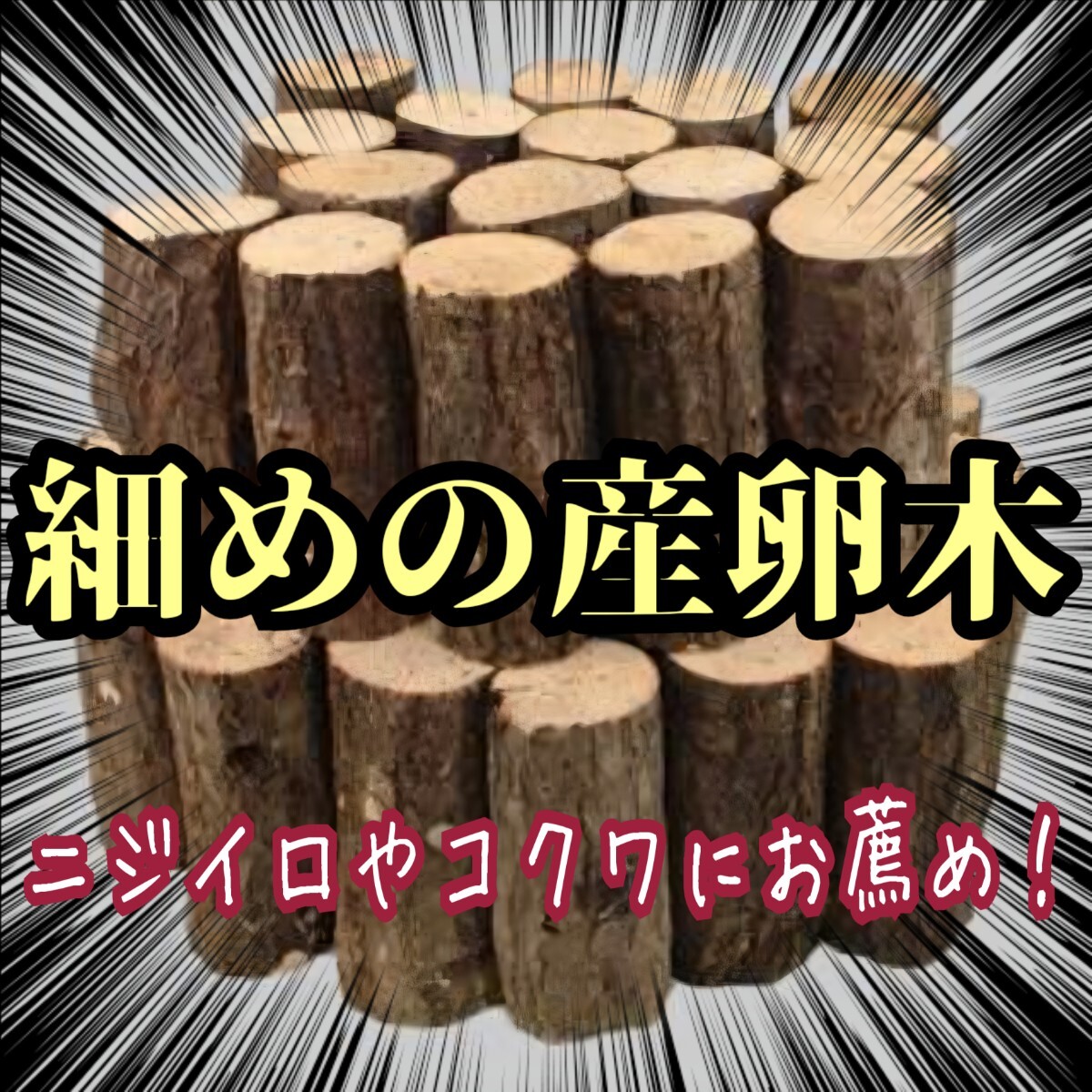 クワガタを産卵させるならコレ! クヌギの産卵木 細めサイズの出品です。 数量:1本 追加は何本でもご対応致します。 (直径約7~10センチ) 細めなので菌糸がしっかり回っていて芯がなくよく産みます。 ニジイロクワガタやコクワなど小型種にお薦めです。