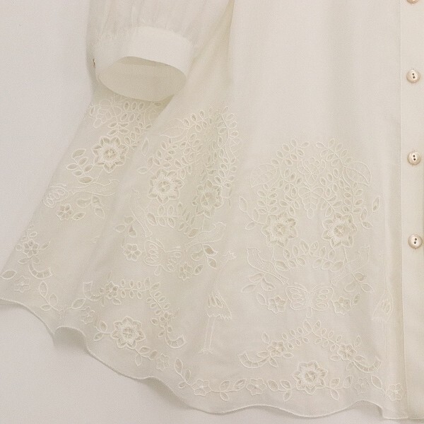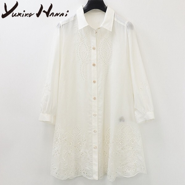 【FA465】美品◆YUKIKO HANAI ユキコ ハナイ シルク混 花柄アイレット刺繍 コットン ブラウス チュニック 白 ホワイト 10 | |