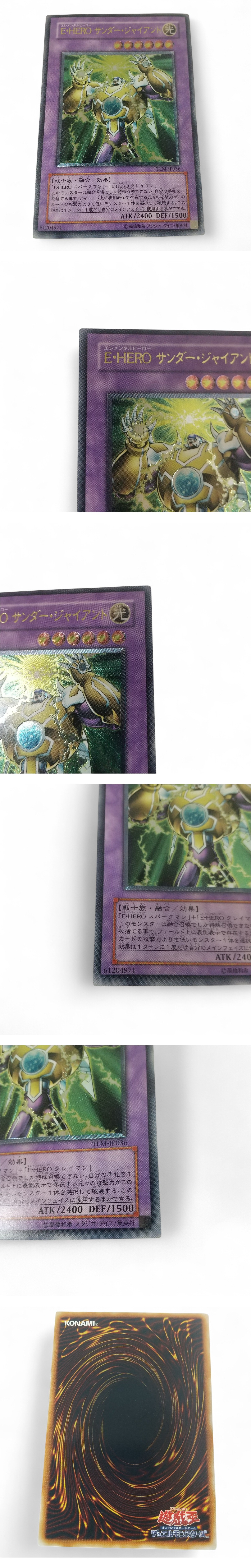 ※必ず最後までお読みください。 Please be sure to read to the end. 一定要到最后※ | 商品概要 | 数あるオークションの中からこちらの商品をご覧頂きまして誠にありがとうございます! ※商品説明と注意事項を必ず全てお読み頂いた後にご入札下さい※ 引き続き 安心できる気持ちの良いお取引を心掛けてまいりますのでどうぞ 宜しくお願い致します! 色んなジャンルの商品を多数出品しておりますので、 こちらをクリックしてご覧ください!! ◎遊戯王◎E・HERO サンダー・ジャイアント ATK/2400 DEF/1500 TLM-JP036 即発送 ※最下部にも写真掲載中なので必ずご覧下さい。 【商品概要】 「E・HERO スパークマン」+「E・HERO クレイマン」 このカードは融合召喚でしか特殊召喚できない。 (1):1ターンに1度、手札を1枚捨て、フィールドの表側表示モンスター1体を対象として発動できる。 元々の攻撃力がこのカードの攻撃力より低いそのモンスターを破壊する。 【状 態】 写真をよくご確認お願い致します。外装ランク:(A) 【詳細・備考】 写真に写っているものが全てになります。 また、タイトルや本文と写真が異なる場合は写真を正とします。 保管品なので状態判断には個人差があることを予めご了承の上 写真にてご確認ご判断をお願い致します。 譲り受けたお品で当方は専門店ではないので詳細の質問にはお答えできかねます。 また簡単な検品は行っていますが、譲り受けた商品のため欠品等見落としがある場合がございますので保証等はしかねます。 ※返品不可が入札条件となります。 ※中古現状とは動作未確認のジャンク品になります。 ※通電確認とは電源に繋げてONOFFの確認のみになります。 ※バッテリーや電池は消耗品なので経年劣化がある場合もあることをご了承お願い致します。 ※保管品に関しては未使用でも新品ではございませんので、保管期間による劣化等ある場合もございますので、新品をお求めの方はご入札をお控えください。 ※ジャンク品ではなくても中古品の性質上、配送途中や到着後に万が一不備不良が起きうる場合もございますがも保証はできかねますので、返金返品不可をご了承の上ご入札お願い致します。 ※未開封品に関しては中の状態が不明な為、不具合等ございましたらメーカーとご相談お願い致します。保証対象外とさせて頂きますのでこちらでは対応いたしません。 尚、実際の色とパソコンや携帯の画面を通じた色彩は異なる場合もございますのでお気をつけ下さい。 =外観ランク表記= (N)長期保管/未使用品(新品ではございません) (S)数回程度使用の美品 (A)多少の傷、若干の使用感がありますが程度良好の美品 (B)一般的な使用感あります。 (C)汚れ、使用感を感じるがまだまだ使える品物 (D)汚れ、使用感等が見受けられる難有品 (E)ジャンク品 ※大体の目安としてお考え下さい。 新品に近いものをご希望の方や神経質な方のご入札はご遠慮下さい。 ご入札頂いた時点で本文説明文に了承を頂き、商品にご納得して頂いたと当方で判断させて頂きますので 【ノークレーム・ノーリターンがご入札の条件となります】 また、弊社のオークションでは いろんなジャンルで多数出品しておりますので是非ご覧ください(^_-)-〇 ![]() ▶入札の取り消しは受け付けておりません。 落札後の質問やキャンセルも受け付けておりません。 尚、営業時間が9-18時となっておりますのでオークション終了間際や質問内容によっては返答できない場合がございます。 ジャンク商品に関してはいかなる場合も返品返金の対応はできかねます。 落札後のサイズ違いやイメージ違い等のキャンセル、クレーム、返品等はお受けできませんので予めご了承ください。 ご入札の方につきまして、当方にて評価が著しく悪いと判断した場合は、トラブル防止の観点からご入札を取り消させていただく場合がございますので予めご了承ください。 新規IDの方や、いたずら入札と判断した場合、入札削除させていただく場合がございますので、新規の方は質問欄にて購入意思を示してからのご入札をお願い致します。 ※の障害等で入札が不適切に成立した場合は落札された場合でも削除対象になりますことを予めご了承お願い致します。 取り置きは可能ですが物や金額によってはすぐに決済をお願いする場合がございます。 当方大量の商品を管理している為、複数落札の同梱ご希望の方は、「まとめて取引」の依頼を必ず行ってください。 ◆連絡方法◆ ▶当方連絡事項は全て取引ナビを使用しております。 ご連絡先、ご要望等は必ず「取引ナビ」にご入力お願い致します。※ご入札前の場合はdiamonds100ct@yahoo.co.jpまでお願い致します。 ⇩⇩下記の注意事項を必ずお読み下さい。⇩⇩ |