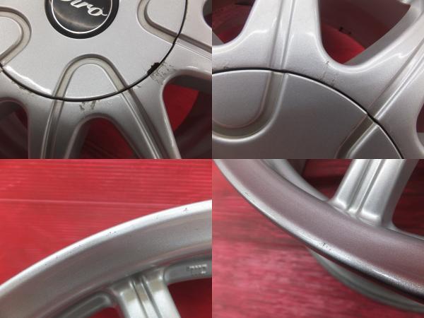 | ホイール詳細 | ホイール:ブリヂストン GIRO マルチホイール サイズ:7J×16 インチ +48 PCD:5H100・114.3 カラー:シルバー 状態 ガリ傷 :無し 腐食 :有り ディスク面傷 :有り 使用感 :有り コメント:使用に伴う傷あり センターキャップ切り欠き部にヒビあり 所々腐食による塗装の浮きあり |