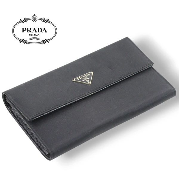 正規品 美品 PRADA プラダ ポコノ ナイロン サフィアーノ エンボスレザー 3つ折り 三角プレート ロングウォレット 長財布 黒 ブラック [浏览原始页面]