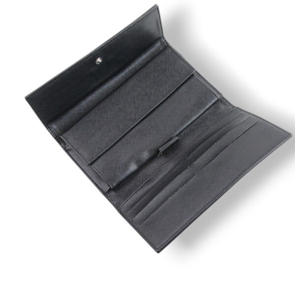 正規品 美品 PRADA プラダ ポコノ ナイロン サフィアーノ エンボスレザー 3つ折り 三角プレート ロングウォレット 長財布 黒 ブラック