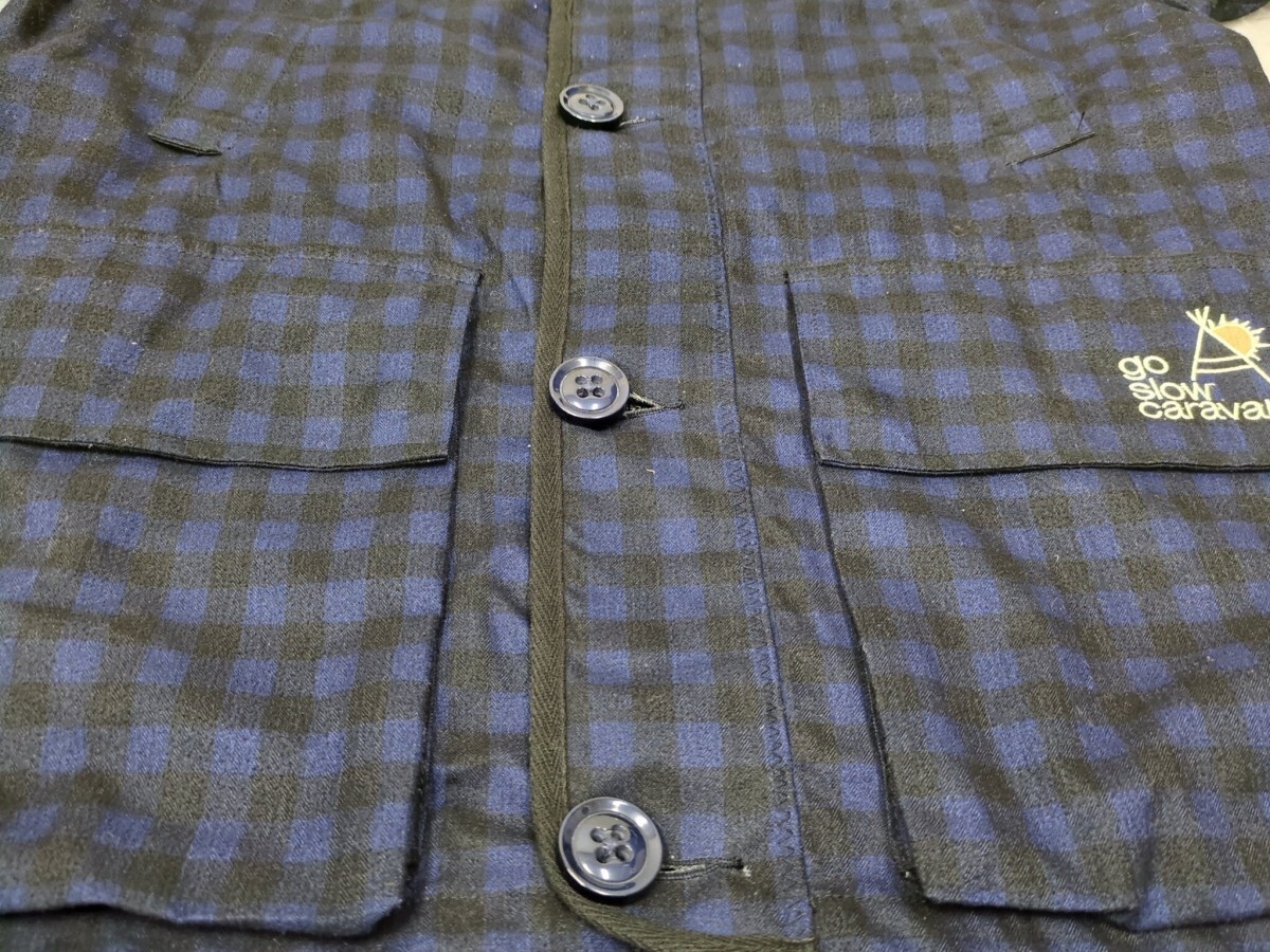 17.go slow caravan ブロックチェック柄 フード付き 裏メッシュ ジャケット フーデッド ジャンパー パーカー アウトドア メンズ4 y601