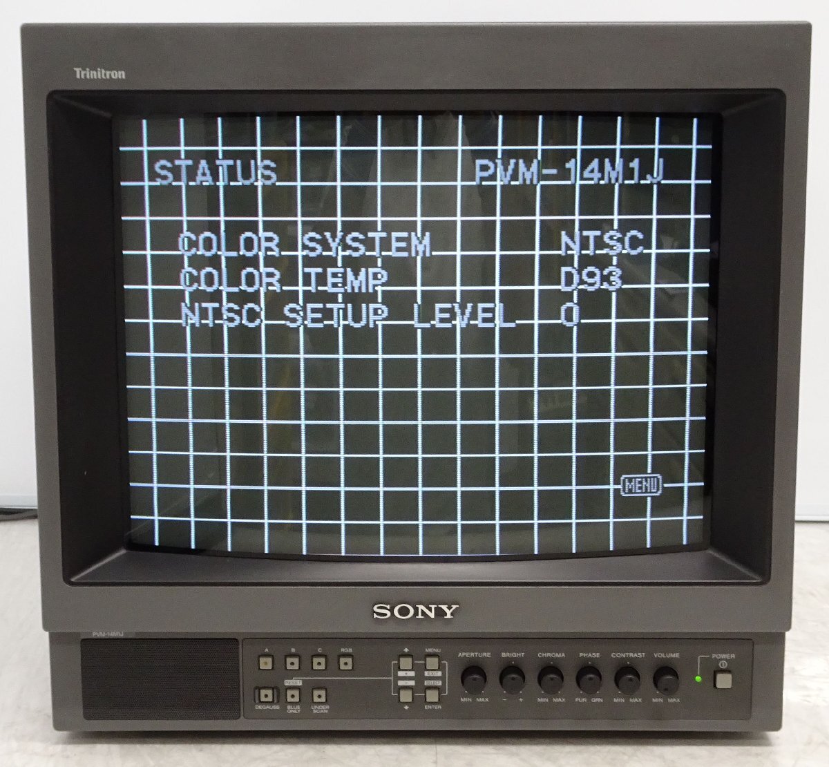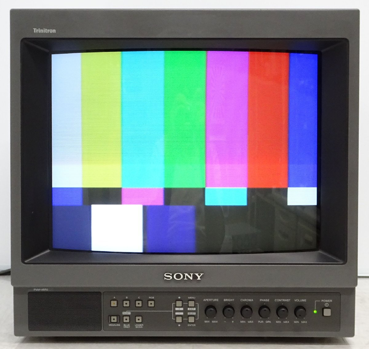 商品説明 SONY PVM-14M1J 業務用14型トリニトロンカラービデオピクチャーモニターの出品です。 出力・発色 共に良好な貴重な個体となります。 ☆動作確認につきまして コンポジット入力にて動作を確認しました。 焼け付きなど色を変え確認しましたが見えませんでした。 モノラルオーディオ出力、ビデオコントロールも正常でした。 希少な生きているトリニトロンで動作も正常ですが、古い機材となります。 長期の動作保証は難しい為、中古/現状品として出品させて頂きます。 商品詳細