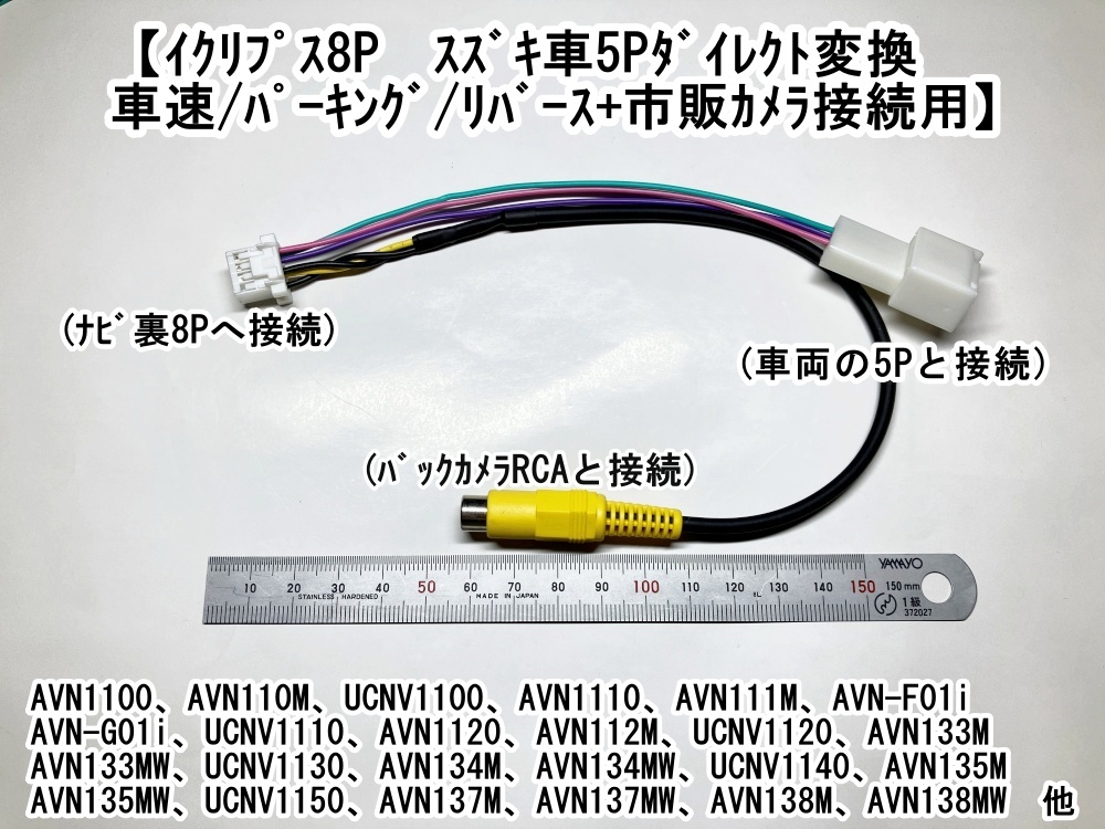 車両の車速/パーキング/リバース各信号をナビへ入力します。 8Pカプラはナビ裏へ、配線3本は車両の各信号線へ接続します。 配線長さ: 約15cm 薄緑:パーキング、 桃:車速、 紫:リバース または 赤:パーキング、 紫:車速、 緑:リバース ※使用に問題ない配線色等は変更になる場合があります 写真1中央が出品物です。(他は関連品で別料金です) 適合性は写真・実機で判断してください。 ※出品分にはバックカメラ用のカプラは付属しません。 落札後に取引ナビでお知らせくだされば対応可能です。 【関連品】 (ナビによっては対応できません) ・バックカメラ対応品 (純正4Pタイプ、市販RCAタイプ) ・トヨタ5P用ダイレクト (バックカメラにも対応できます) ・電源コード バックカメラ変換コード 外部入力コード 配線が長いタイプやその他関連品もあります 【対応ナビ】(参考) AVN138M AVN138MW AVN137MW AVN137M AVN135M AVN135MW AVN134M AVN134MW AVN133M AVN133MW AVN112M AVN111M AVN110M AVN-G01i AVN-F01i AVN1120 AVN1110 AVN1100 UCNV1150 UCNV1140 UCNV1130 UCNV1120 UCNV1110 UCNV1100 取付説明書 https://www.denso-ten.com/jp/eclipse/support/manual/ 【状態】 新品 (業務用パッケージ無し 発送時は簡易包装します) 使用に問題ない汚れ・細かいキズがあるかもしれません 気になる方は入札を控えるようお願いします。 【保証】 ネコポス等補償付き配達の場合は 落札後2週間以内の初期不良に対応します。 受取後はお早めに通電・動作確認をお願いします。 商品本体のみが対象です。 商品以外のシステム接続機器、工賃等は保証対象外となります。 *作業は専門知識のある方が行うようお願いします 電源配線(ダイレクト)、その他関連も取り扱いしてます。 同梱を希望される場合は1点落札後に取引ナビでお知らせください 複数落札された場合は別々での対応となります。 質問に対する返事が遅れる場合があります。 非公開希望のご質問はこちらまで kuruma_denso-situmon@yahoo.co.jp |