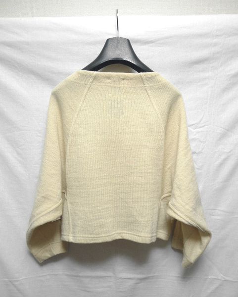 色 ベージュ系ミックス サイズ 38 寸法 着丈45cm位 身幅65cm位 袖丈脇下から38cm位 (若干の誤差が生じてしまう場合がありますのでご了承下さい) 状態 3~4回程着用していますがよごれなどはなく良好です。 素材 毛80% 綿20% 日本製 ジャミーソンズの素材を使用したダブルフェイスのニットです。 ショート丈のワイドシルエットで、レイヤードスタイルがかわいい一着です。 |