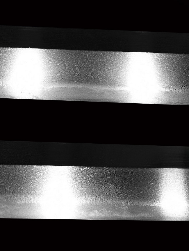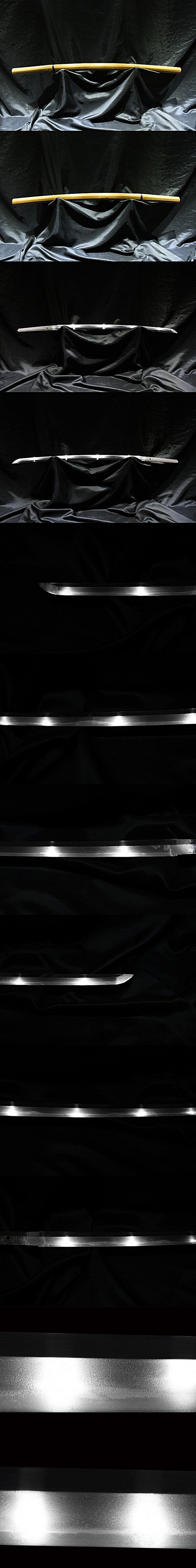 表【肥前国住近江大掾藤原忠廣】 裏【-】 種別:刀 サイズ:長さ 66.6cm 反り: 1.4cm 目くぎ穴 1個 元幅:約3.172cm 元重:約0.725cm 先幅:約2.434cm 先重:約0.522cm 刀身重量:約784.6g(ハバキ・柄をとった状態) ハバキ重量:約41g 鞘全長:約94.2cm |
