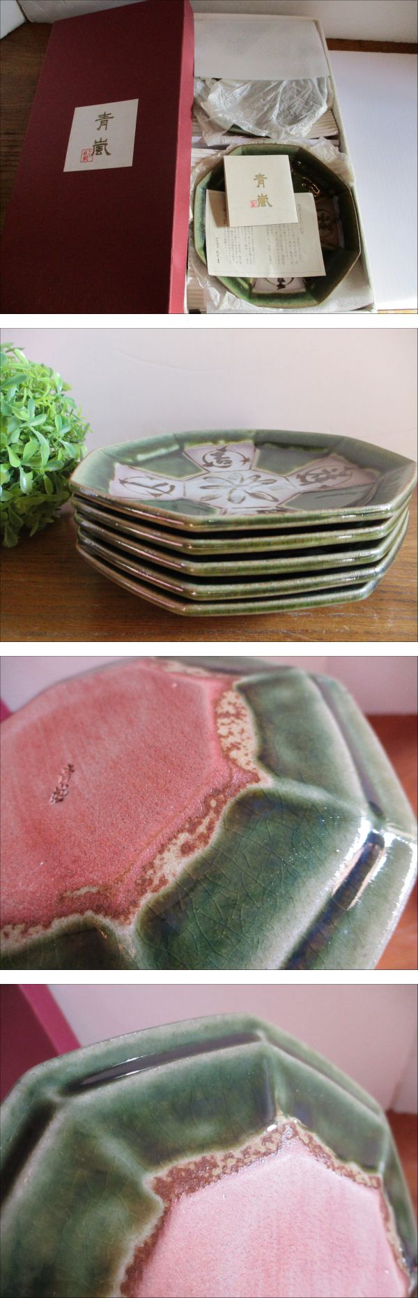 【未使用・箱入】たち吉特撰 青嵐 吉祥 八角銘々皿 5枚セット 中皿 盛皿 角皿 和皿 器 和食器 幅約17cm プレート 人気ブランド キッチン | |||