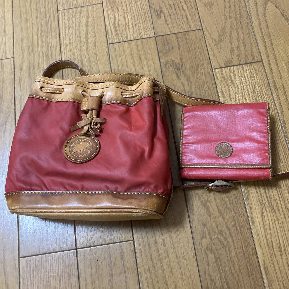 ハンティングワールドのポシェットと財布のセットです。ポーチの内側は綺麗ですが底など外側は汚れがあります。財布も汚れはありますがボタンなどきちんと止まります。