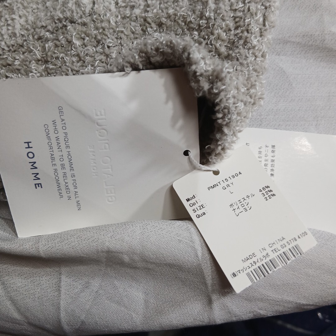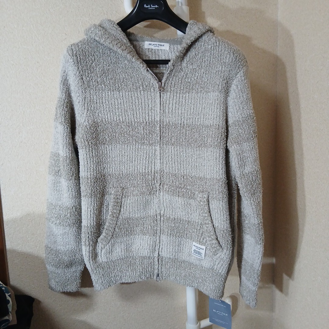 ジェラートピケオム(マッシュスタイルラボ)のジップアップパーカーです。サイズは、Lです。素材は、ポリエステル46%、ナイロン32%、レーヨン22%です。色は、ライトグレー系です。未使用ですが自宅保管品です。
