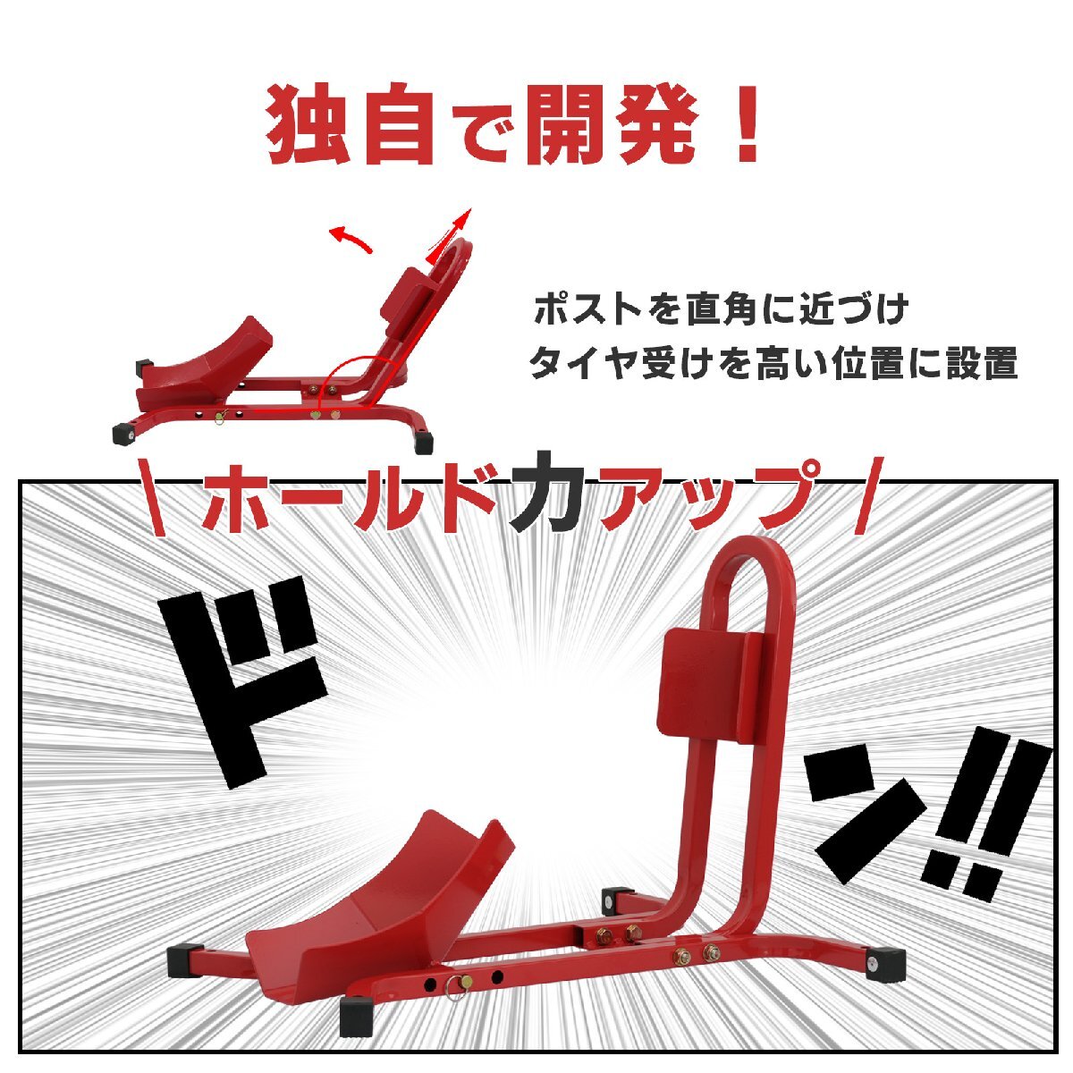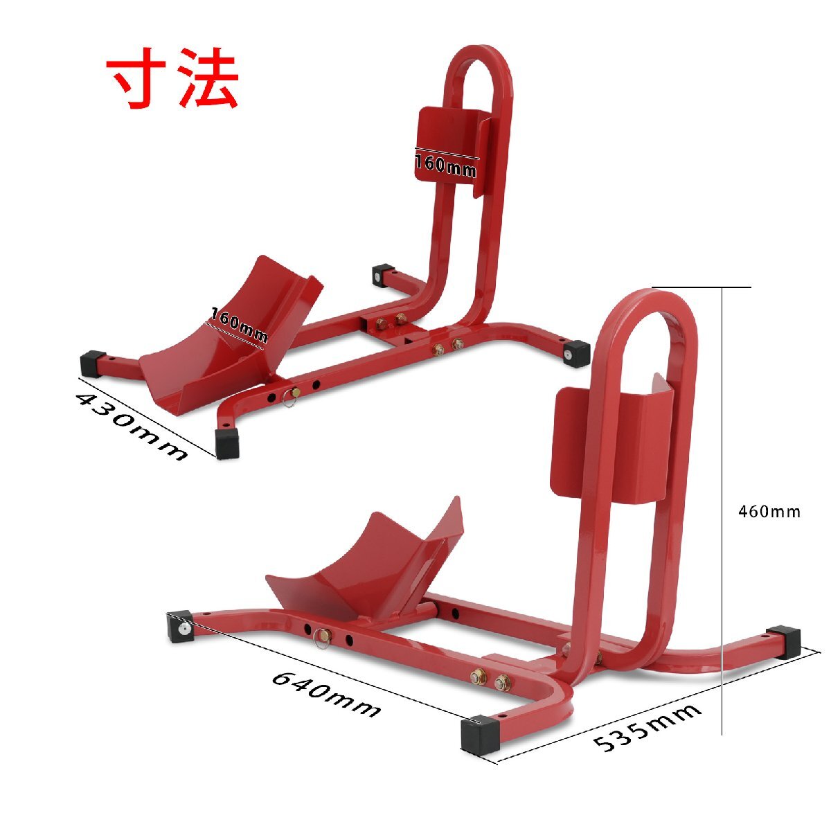 | 仕様 | 製品サイズ:640×535×460mm 対応ホイール:17~21インチまで 対応タイヤ幅:100~140mmまで 耐荷重:300kg カラー:レッド 梱包サイズ:W63×D22×H17cm 梱包重量:7.1kg 製品重量:6.5kg 材質:鉄製 |