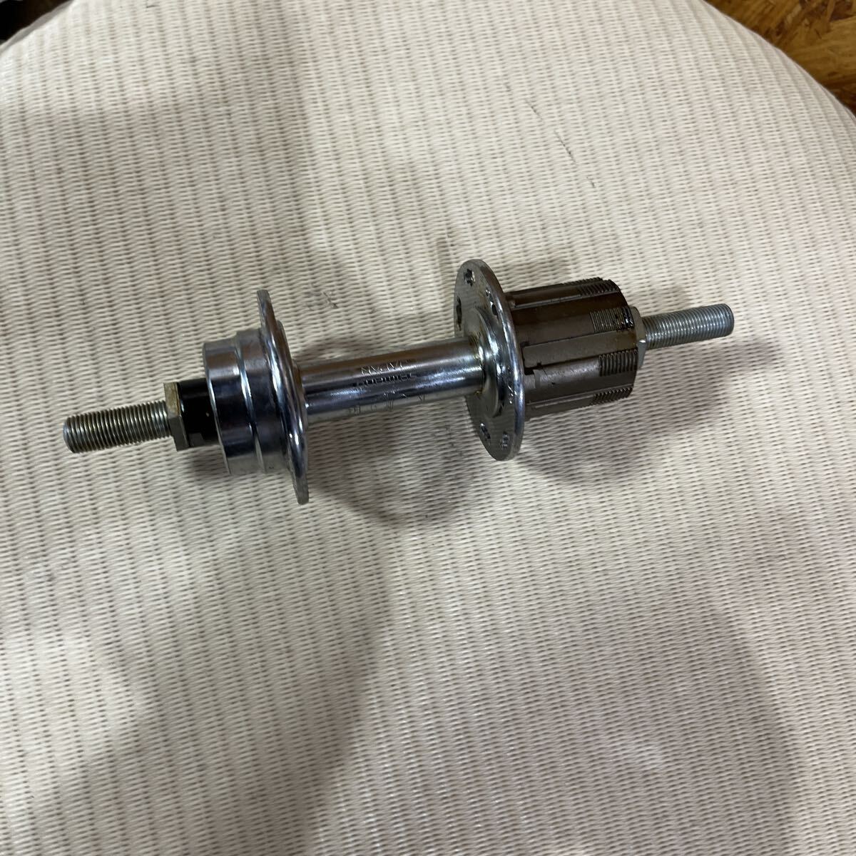 長期保管品です。倉庫から出てきました。後輪全長約180mm、エンド幅約125mmです。写真で判断できる方お願いします。送料600円です。
