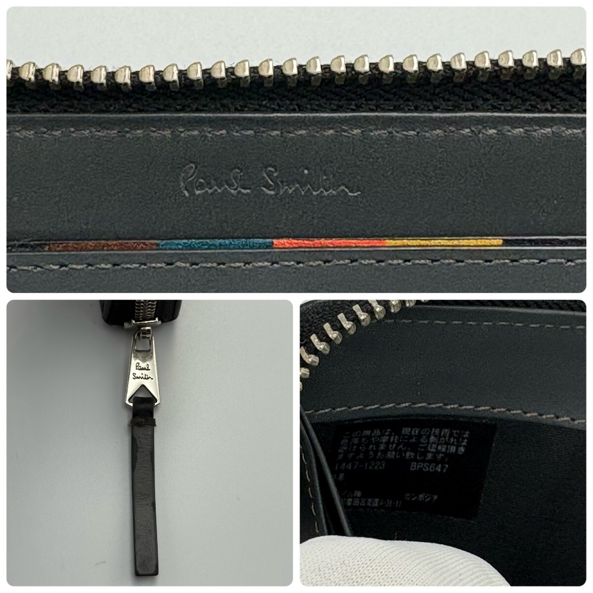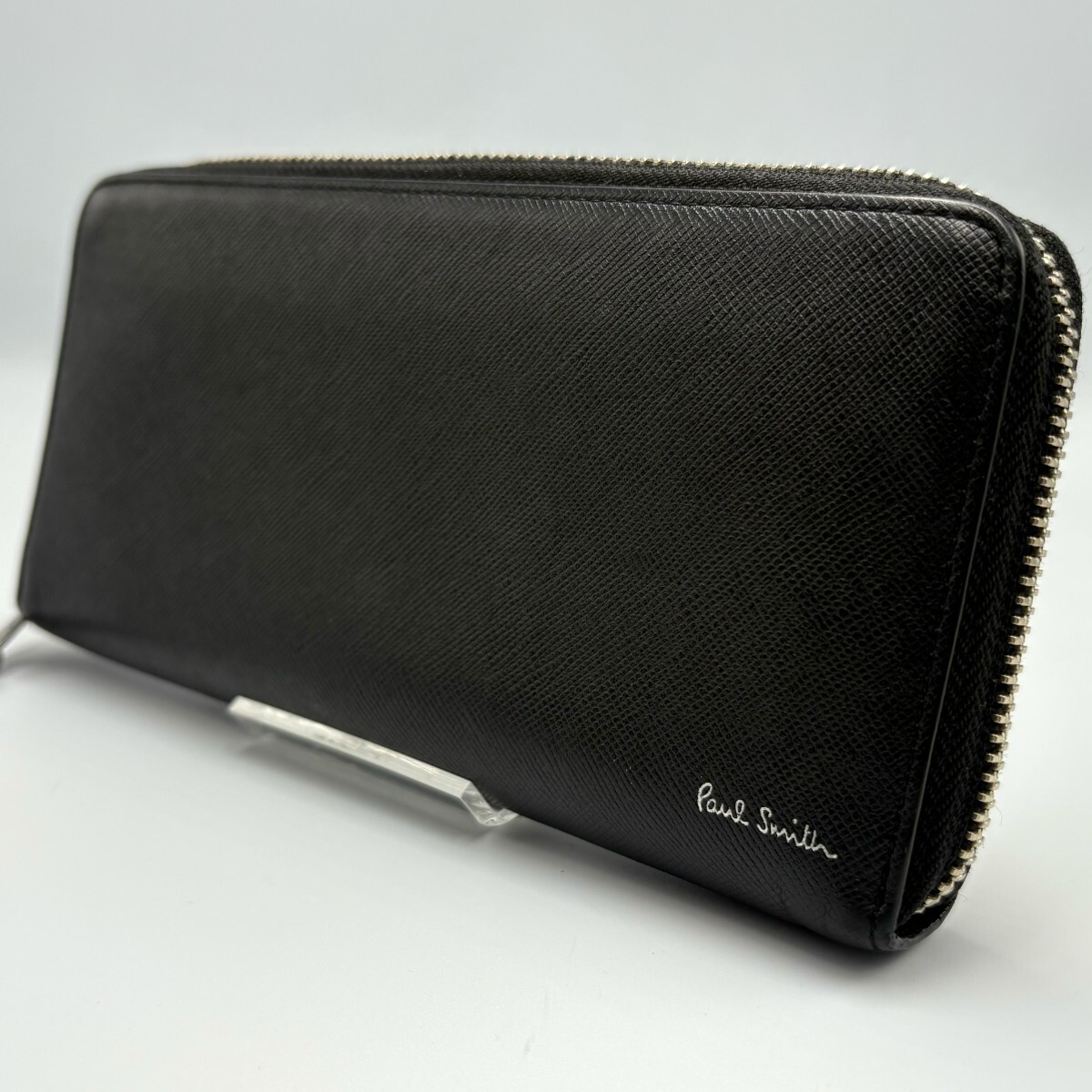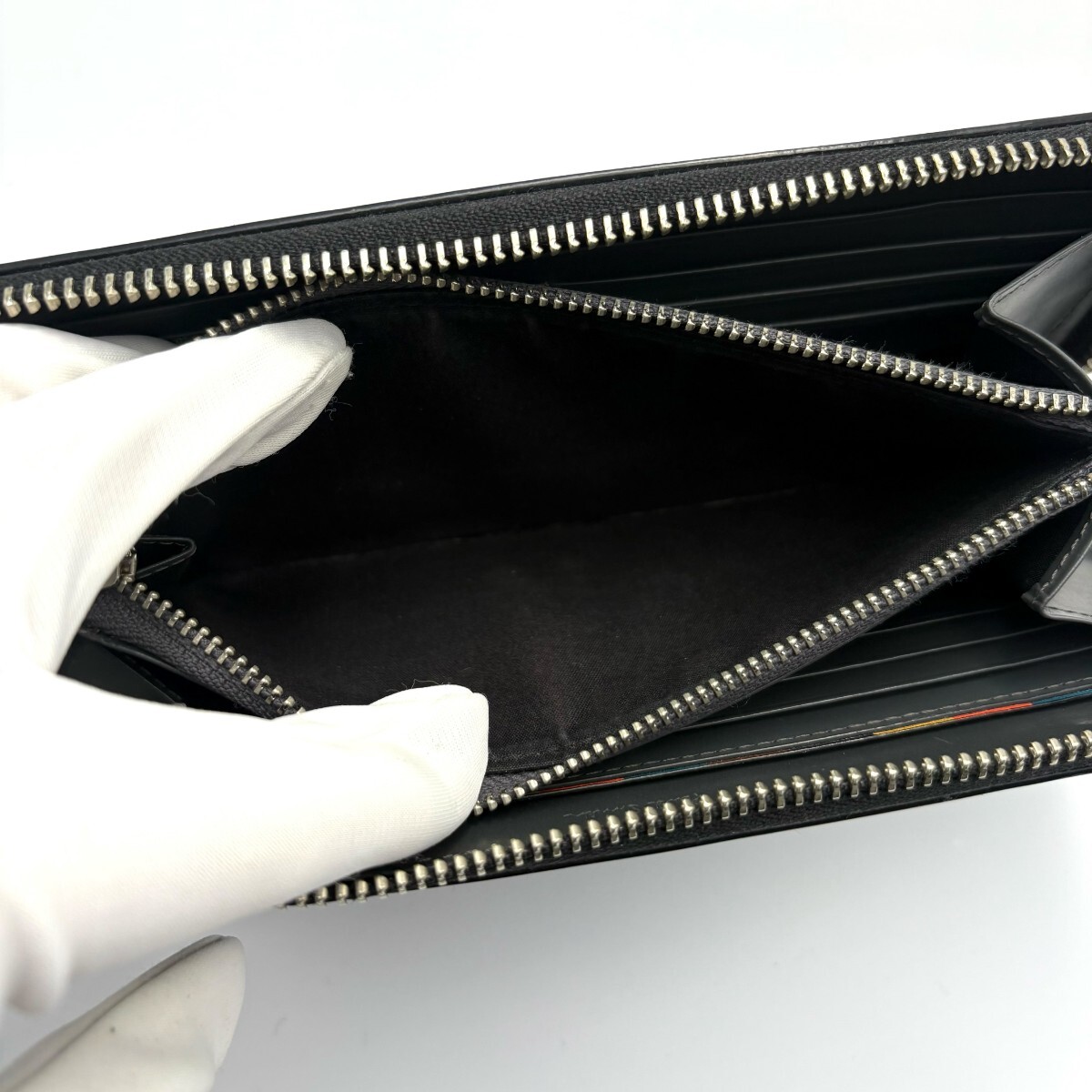 美品◎ ポールスミス PAULSMITH ブライトストライププラー ラウンドファスナー 長財布 サフィアーノレザー 黒 ブラック 小銭 ウォレット