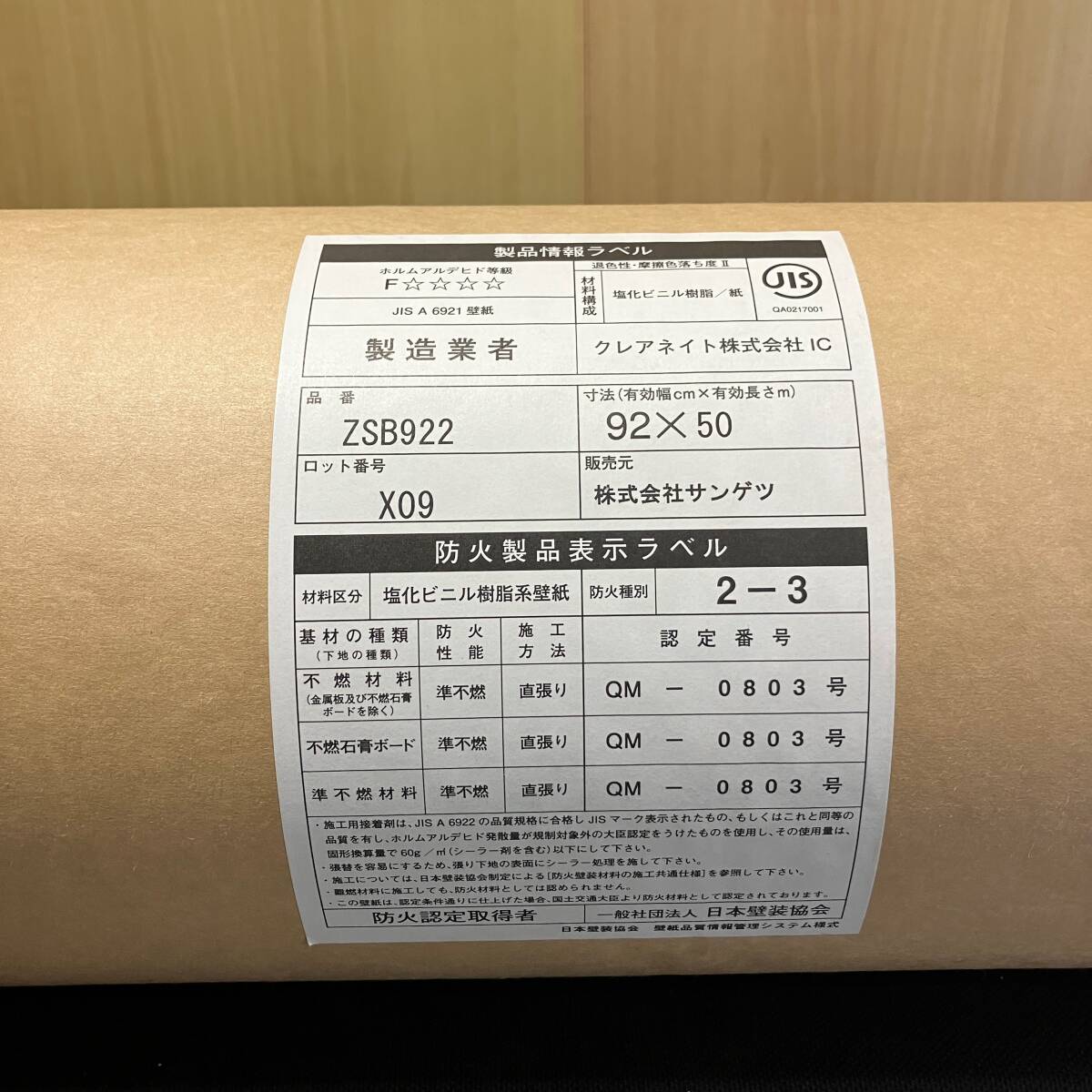 P【未使用】サンゲツ クロス ZSB922 幅約92cm×長さ50m 壁紙 51108TN17xxx1