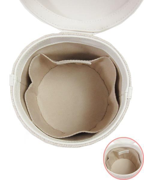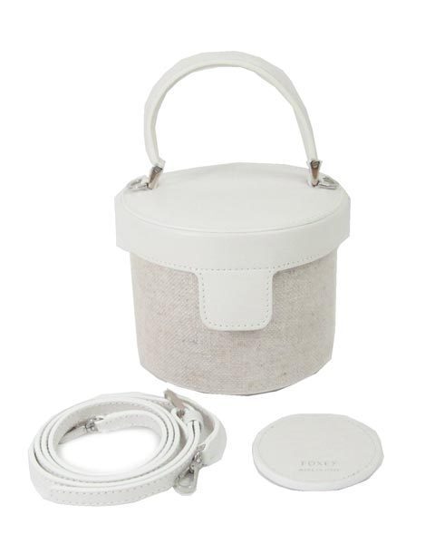 | コロンとした小振りの上品なPetit Voyageバッグ。フォクシーらしい雰囲気で、フォクシースタイルとコーディネートしてオシャレをお楽しみいただけます。白と薄いベージュなのでお洋服とも合わせやすいです。内側ポケット4つ。 |