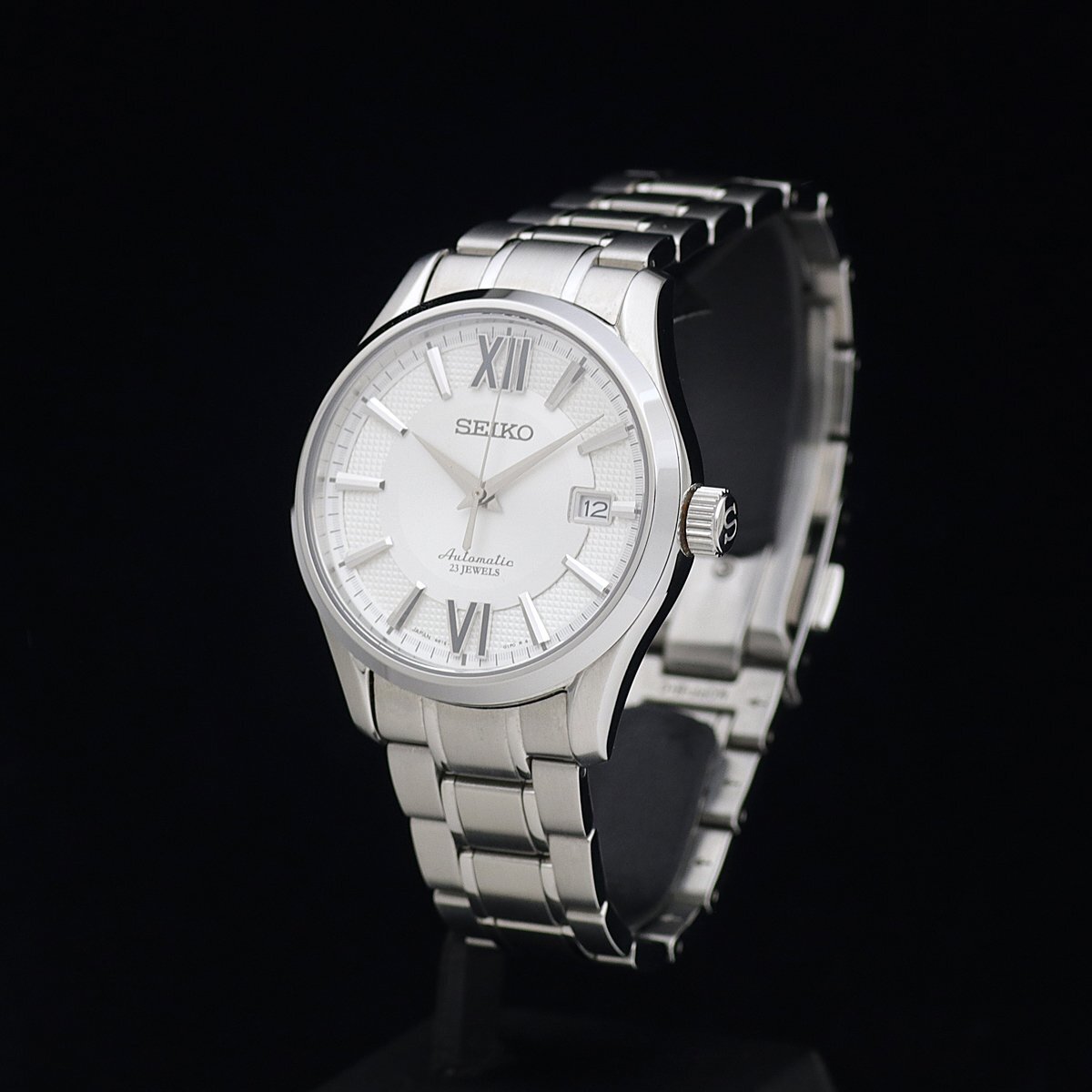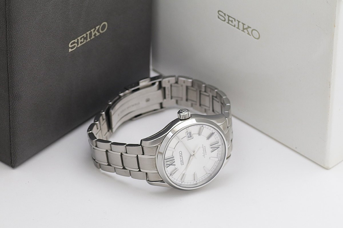 | 商品説明 | ![]() ![]() ![]() ●SEIKO セイコー プレサージュ アップグレードライン 自動巻 ●Ref:SARX001 ●Cal:6R15-02F0(6R15C) ●シリアル:282*** ●メンズ/自動巻 ●日差:+11秒~+13秒(機械計測) ●ケース/ブレス素材:SS/SS ●文字盤色:ホワイト ●ベゼル径:39mm ●ケース径:43mm(リューズ込み) ●ケース厚:13.2mm ●腕周り:20.5cm(余りコマなし) ●重さ:148.2g ●定価:\70,200-(税込) ●付属品:外内箱 ●ランク:SA~A 【ランク詳細】 S 新品、未使用 SA 極上美品(細かな傷も少なく、とても綺麗) A 美品(細かな傷はあるが、目立つ傷がない) B USED(細かな傷はあるが、目立つ傷が少ない) C USED(細かな傷があり、目立つ傷が多少ある) J ジャンク(動作不良、一部動作不良、動作未確認) ●薄い傷はありますが、使用感はほとんどなく超美品です。 ●ガラスは両面無傷です。針、文字盤ともにきれいです。 ●動作確認済みで、正常に動作します。 ●オーバーホール歴は不明です。 ●詳細は 販売店サイトをご覧ください。 ●新品、未使用品、かなりきれいで手を加える必要がないと判断した商品以外は、弊社もしくは専門の業者にて、専用の器材を使って洗浄、研磨等を行い、出来るだけきれいな状態でお届けできるよう心がけております。また梱包の際には除菌シートにて清掃を行った上で発送させていただきます。(一部革素材は行いません) ●ご質問、ご不明点は「m1t2m3_2006@sun.cims.jp」までご連絡ください。 | ||||||||||||||||