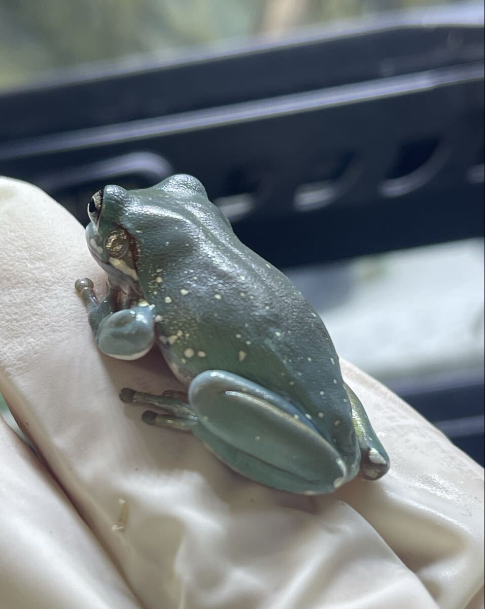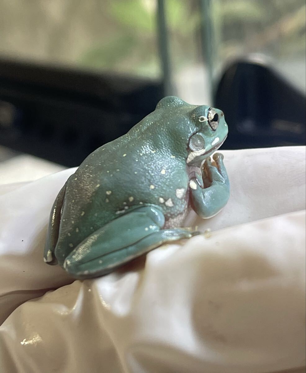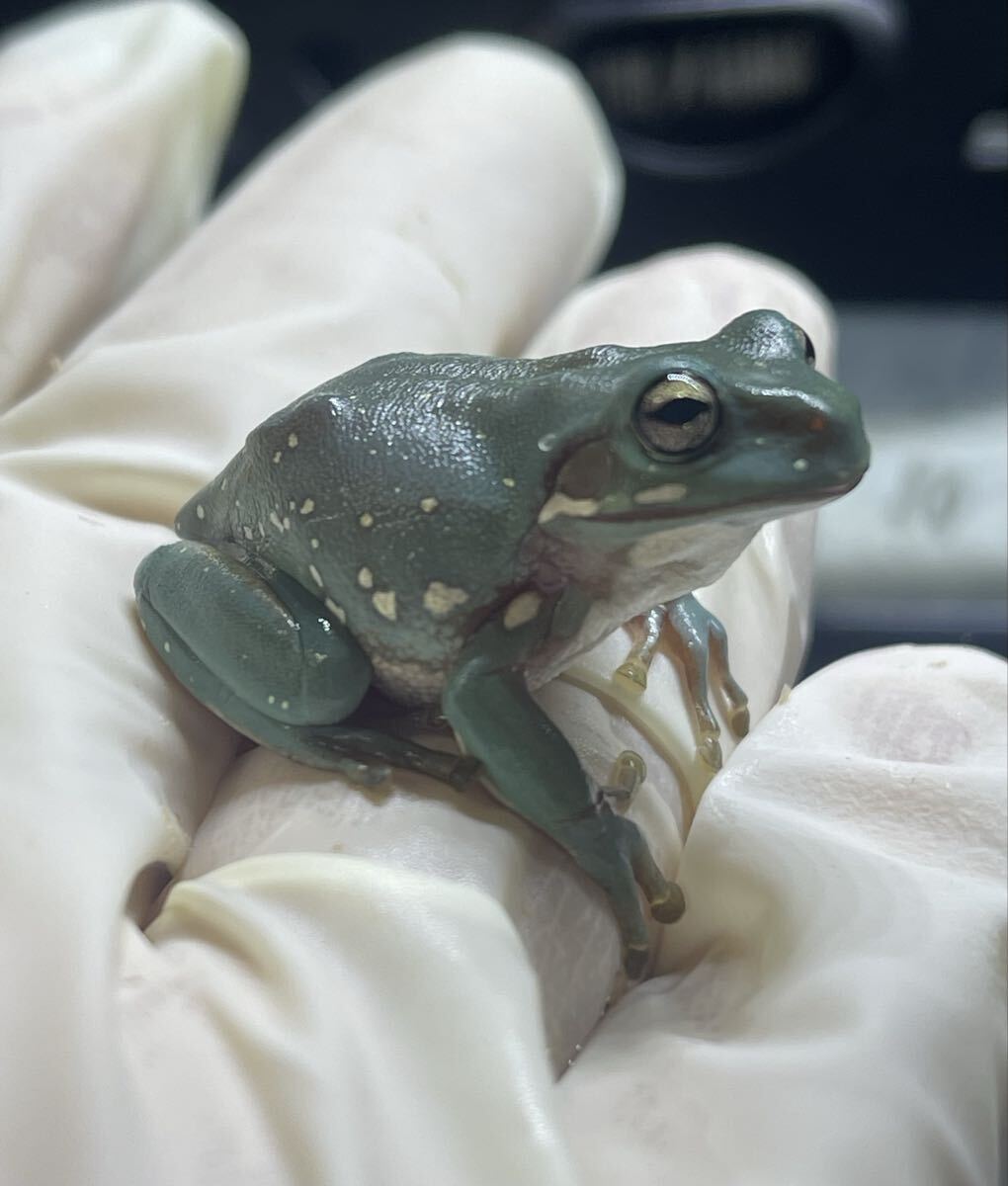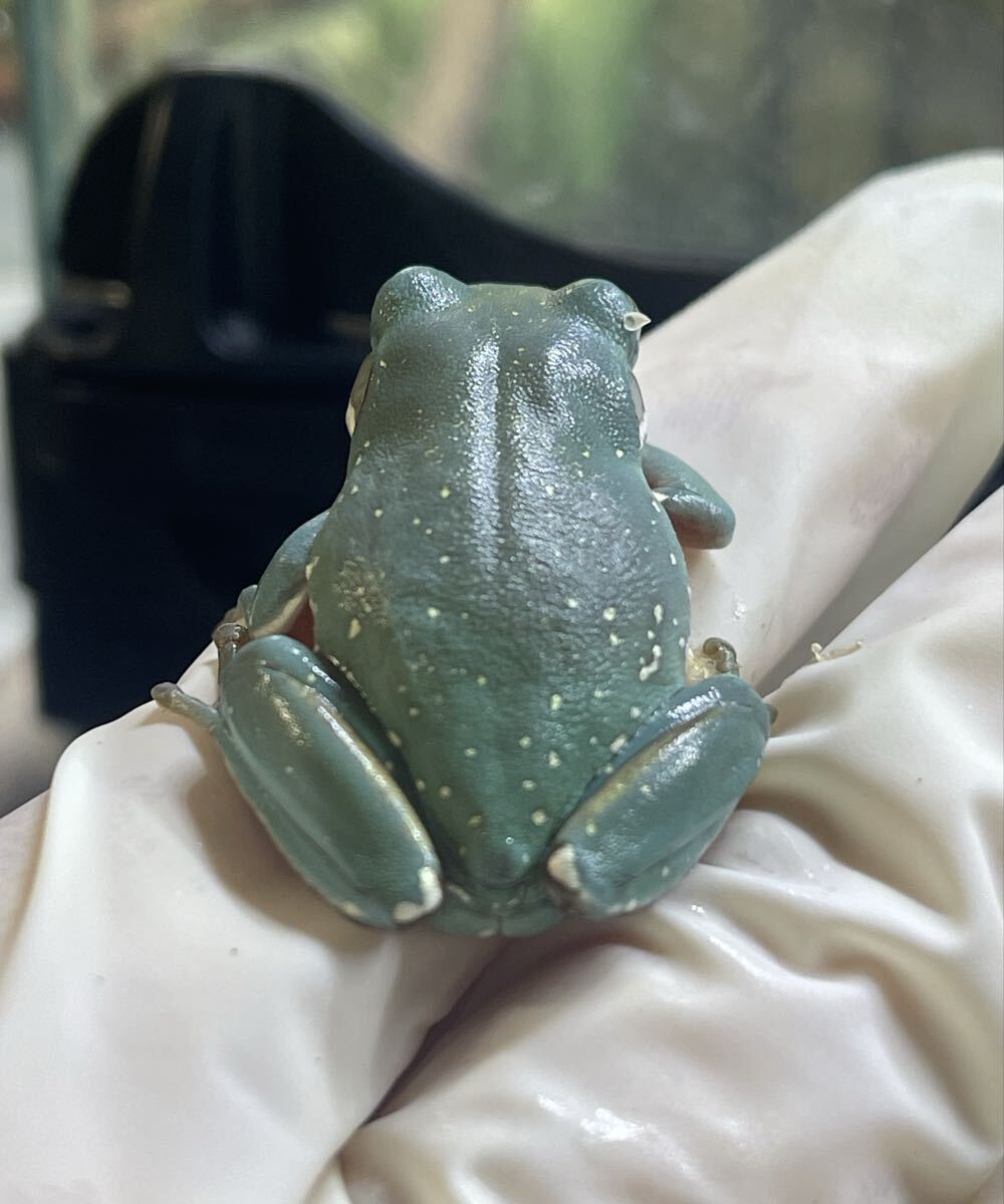 繁殖個体ブルーのイエアメガエルスノーフレークです。成長とともに青色が濃くなる個体です。サイズは3cmです。餌はイエコを与えております。保温して発送しますが生き物ですので死着保証は出来ません。よろしくお願い致します。