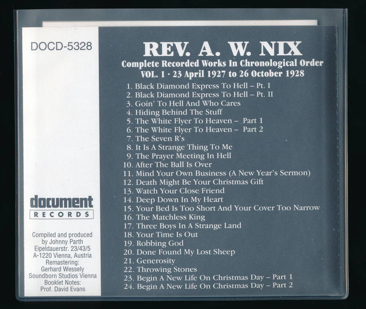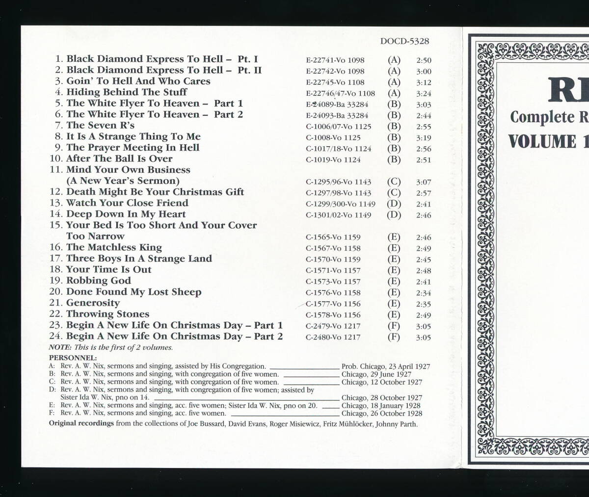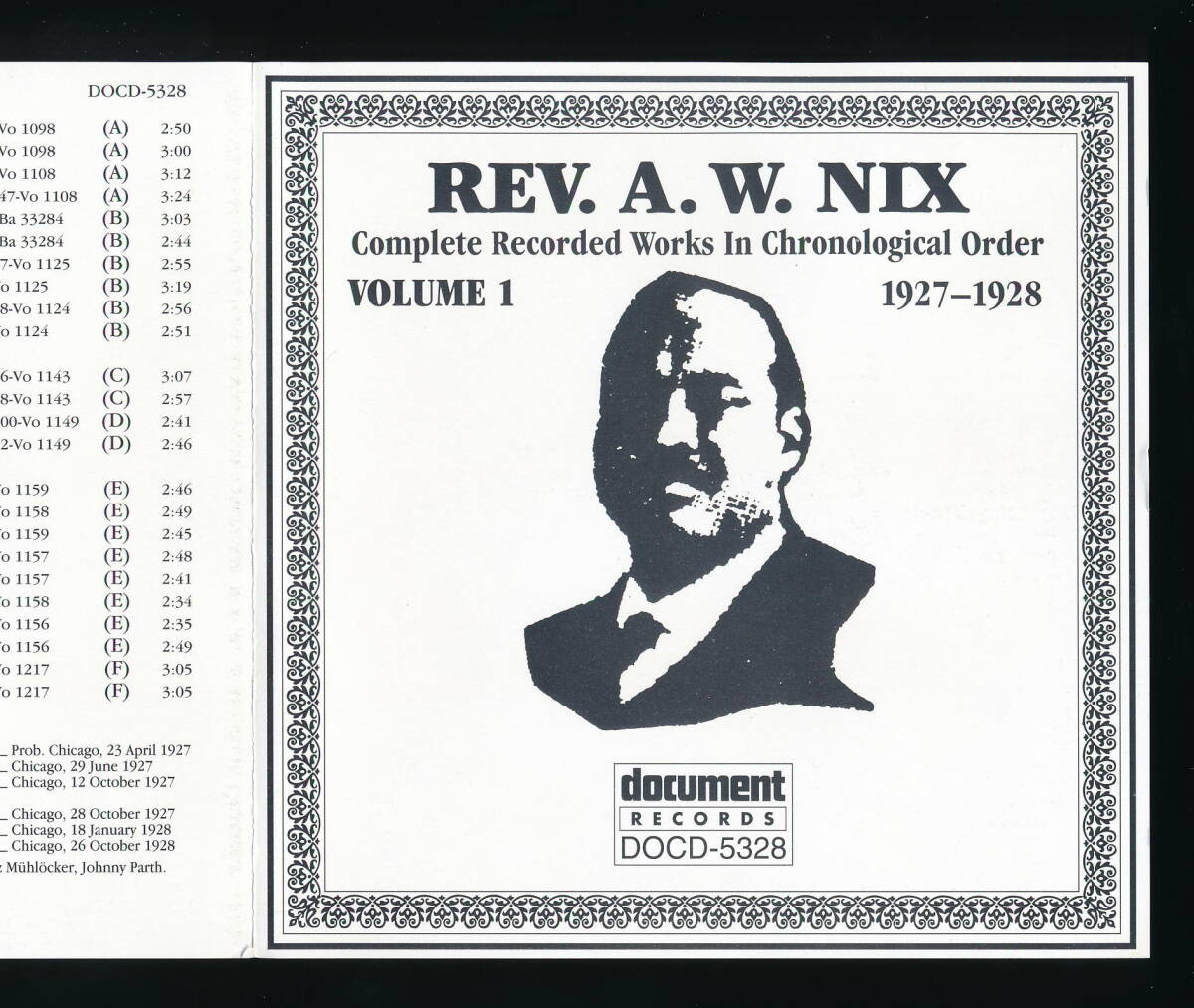 REV. A. W. NIXのCD「COMPLETE RECORDED WORKS IN CHRONOLOGICAL ORDER VOLUME 1 (1927-1928)」の輸入盤・中古品です。