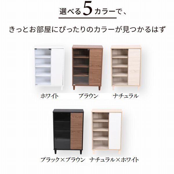 【カラー】 ホワイト、ブラウン、ナチュラル、ブラック×ブラウン、ナチュラル×ホワイト 【サイズ】 <外寸> 幅60×奥行29.5×高さ90(アジャスター80.5)cm <内寸> ガラス扉内:幅29×奥行25.5×高さ76cm 木製扉内:幅19(有効23)×奥行25.5×高さ76cm 可動棚大:幅31×奥行25×厚み1.5cm(3.2cmピッチ13穴) 可動棚小:幅22.5×奥行25×厚み1.5cm(3.2cmピッチ13穴) 【材質】 <ホワイト> 本体:プリント紙化粧合板 天板・扉:合成樹脂化粧合板(PVC) 脚:天然木 <ブラウン、ナチュラル> 本体:プリント紙化粧合板 脚:天然木 <ブラック×ブラウン> 本体:プリント紙化粧合板 天板:合成樹脂化粧合板(PVC) 脚:天然木 <ナチュラル×ホワイト> 本体:プリント紙化粧合板 扉:合成樹脂化粧合板(PVC) 脚:天然木 【耐荷重】 天板:(約)10kg以下 可動棚:各(約)5kg以下 扉内固定棚:(約)5kg以下 【生産国】 中国 【梱包】 サイズ:83.5×36.5×20.5cm、重量:18.9kg 【その他】 ・可動棚大3枚、可動棚小3枚 ・背面化粧なし ・脚裏フェルト付き ・アジャスター付き 【組み立て品】 お客様による組み立てが必要です。 【ご注意】 ・サイズ、重量は概算です。 ・商品カラーはご使用のモニターによって実際の明るさや色と異なって見える場合がございます。 |