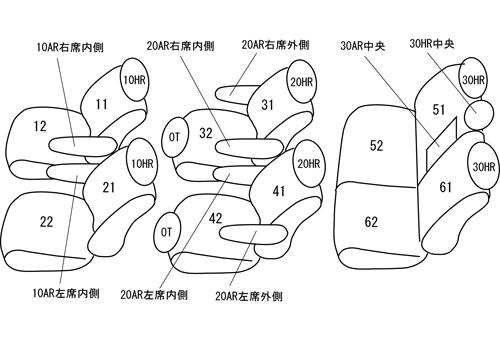 | シートパターン | ヘッドレスト総数:7 1列目肘掛:2 2列目肘掛:4 3列目肘掛:1 サイドエアバッグ:× |