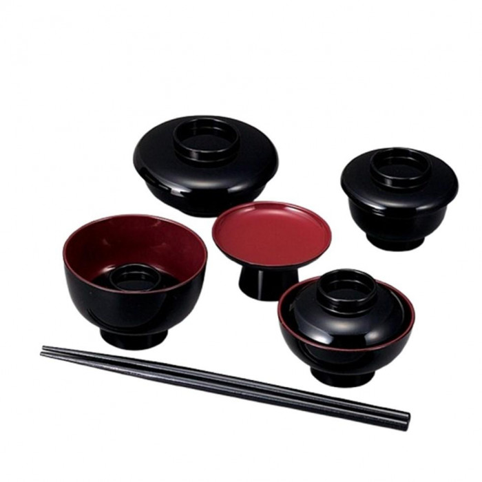 | 素材・材質 | 膳:ABS、表面加工/ウレタン 蒔絵:スクリーン印刷/ポリエステル・LG粉 椀:ABS、表面加工/ウレタン 箸:アテ材、表面加工/ウレタン |