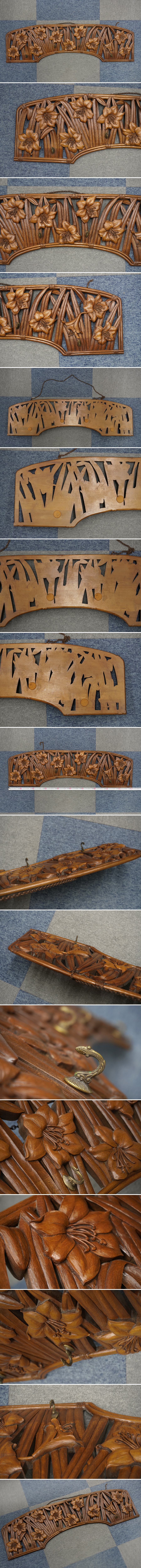 | 透かし彫り 木彫り 壁掛けフック 百合 彫刻 ハンガーフック アンティーク調 インテリア 飾り 5連フック 全長100cm レトロ 木製 | ||||
