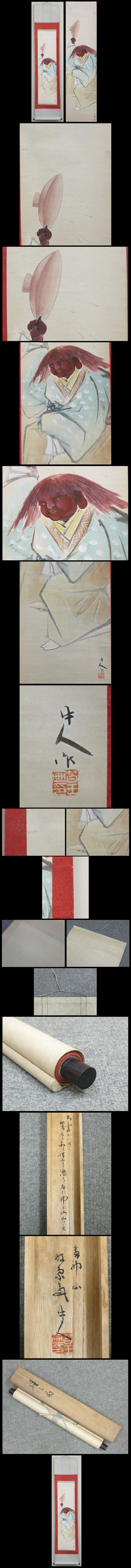 【篁牛人】1901-1984 昭和時代の日本画家。明治34年10月10日生まれ。 商工省工芸展で受賞をかさね,昭和15年ごろからピカソに傾倒し絵画に転向。 仏教や老荘思想などを主題に,渇筆技法で独自の水墨画をえがく。 昭和59年2月25日死去。82歳。富山県出身。高岡工芸学校卒。 幼名は光磨。本名は浄信。作品に「老子出関の図」など。 ★商品サイズ★ ■掛軸 202×44cm ■作品 125×32.5cm ★商品の状態★ 作品に少しのしみ汚れ、皺、補修したようなあとがあります。 表具に少しの皺、小さいスレがあります。 裏側に少しのしみ汚れがあります。 掛緒・巻緒が結びなおされています。 ご承知のうえご入札をお願いします。 時代など詳しくは画像にてよく確認のうえでご検討いただければと思います。 どうぞよろしくお願いいたします。 ★真作と明記しております作品については、 万が一真作でない場合は、落札金額・送料をご返納致します。 また鑑定するにあたって、公的機関での鑑定料・交通費・その他の経費は ご落札者様ご自身のご負担になります。 鑑定についての保証期間は30日とさせて頂きます。 |