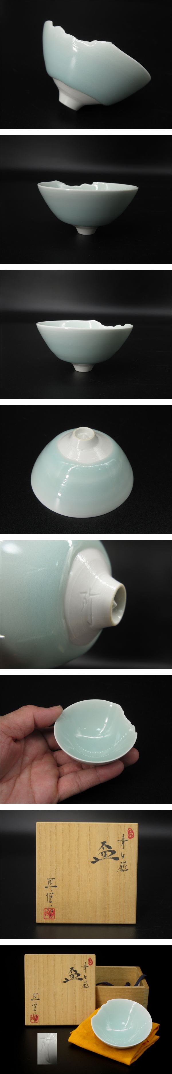 | 商品説明 | 名工「深見陶治」の希少な一品です 斬新なデザイン、美しい青白磁、唯一無二の盃です 是非この機会にどうぞ