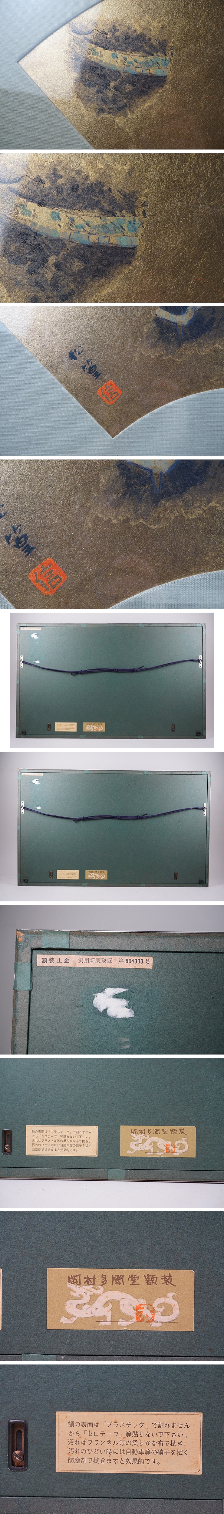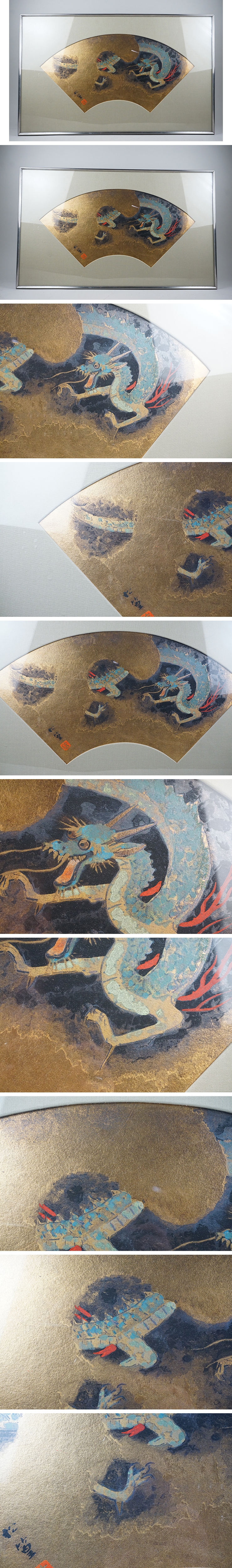 | E-066■模写 金地 上村松篁 額入 雲竜図 扇面画 | ||