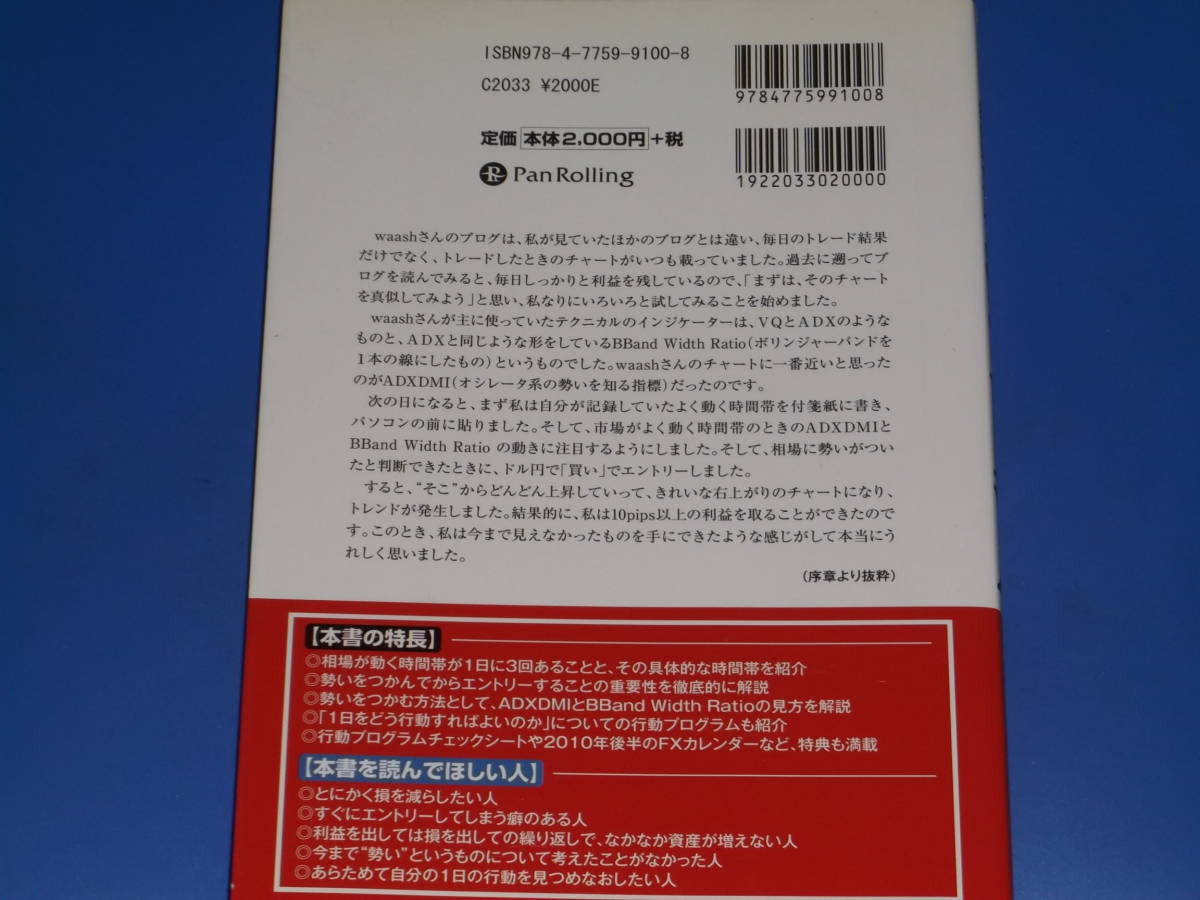 | 商品説明 | ~1日3度のチャンスを狙い撃ちする~待つFX 相場の勢いをつかんで勝負する損小利大の売買をメタトレーダーで実践 (Modern Alchemists Series No. 93) 単行本(ソフトカバー) えつこ (著) パンローリング 2011/8/3 第6刷発行 中古品です。 内容(「BOOK」データベースより) FXで私たちがすべき偉大な仕事とは「待つ」ことです。私たち素人が市場からお金をもらえるときは、きちんと動いている(勢いがある)ときだけです。勢いのある時間帯に実際に勢いが出たときだけエントリー。見るべきテクニカル指標は2つ(ADXDMIとBBand Width Ratio)だけ―相場が動く時間帯が1日に3回あることと、その具体的な時間帯を紹介。また、勢いをつかんでからエントリーすることの重要性を、勢いをつかむ方法としてADXDMIとBBand Width Ratioの見方を解説。更に「1日をどうこうどうすればよいのか」についての行動プログラムも紹介する。 私たち素人が市場からお金をもらえるときは きちんと動いている(勢いがある)ときだけです。本書で紹介する方法は、「MetaTrader4」を使った驚くほどシンプルなものです。難しい考え方や手法はひとつもありません。なぜなら、すべきことが決まっているからです。本書のテーマは、タイトルからもわかるように「待つ」ことです。勝負に出て負けてしまうときは、多くの場合、勢いがない(動かない)ときにエントリーしてしまうことだと著者は語っています。要するに、簡単にエントリーしすぎるからうまくいかないのだと。このことを踏まえて、“勢いのある(動く)時間帯まで待って、実際に勢いがついてからエントリーしてください”と本書では強調しています。ここで、「実際に、勢いがつく時間帯は1日に何度ほどあるのか」といった疑問が出てくるかもしれません。このことについても、詳しく触れています。答えを先に言ってしまえば「9時~11時前後」「15~18時前後」「23~24時前後」の3つになります。これらは、机上の空論から出た結論ではありません。著者が何年も書きためたノートを分析して導き出し、結果を残してきた結論です。さらに、勢いがついたか否か(相場が動いているか否か)をとらえるにはどうしたらよいのかについてもページを割いて解説しています。ここで見るべき指標は「ADXDMI」と「BBand Width Ratio」の2つです。この2つがどういう動きをすれば「勢いがついていると判断できるか」について何度も何度も解説しています。本書では、命題でもある「勢いをつかんでからエントリーする」というメッセージが少しでも多くの方にわかりやすく伝わるように以下の構成にしてあります。 第1部:第1章~第3章 「FX を始めるならば知っておいてほしいこと」として、簡単にエントリーしてはいけないことや、私が毎日確認している情報などについて紹介しています。 第2部:第4章~第8章 「えつこ流FXの実践方法」として、勢いをつかんでエントリーする方法や決済の仕方、枚数の増やし方、行動プログラムなどの話を展開しています。 第3部:第9章~第10章 「知識を“技”に昇華するために」として、チャートに慣れるための練習方法や、本書の内容をきちんと理解したかどうかを確認させる問題集を載せています。 このほかにも、「1日、どう行動すべきか」をあらかじめ確認できるチェックシートや、●月○日にはどう動くべきかを説明した「FXカレンダー(2010年8月~12月まで)を特典として載せています。今、思うように利益が出せていない人、利益も出せるが損失も出してしまう人など、“うまくいっていない”と感じている人は、ぜひ本書を手に取ってください。 ※本書掲載のインジケーターの入手方法についてわからない方は、パンローリングHPの本書紹介ページからダウンロードしてください。 著者について 毎月10万円からスタートして、月末には数百万円にまで膨らませる専業主婦トレーダー。 SEとして銀行や証券会社に勤務し、その後、ソフト開発の会社も経営していたが、息子を妊娠後、専業主婦になる。今は専業トレーダーとなり、相場の勢いをつかむ方法を独学で学び、毎日トレードに励んでいる。FXの利益で、発展途上国の子供たちや貧困層を援助する財団を設立することが夢。 -ブルベア大賞2010-2011 大賞受賞作品- ブルベア大賞とは? 1年間に発売された製品・サービスの中から、実際の投資に役立ったと評価された作品に贈られる賞です。 目次 第1部 FXを始めるならば知っておいてほしいこと(FXは簡単に勝てる投資ではない スキャルピングをする場合は相当な覚悟が必要なことを理解しておきましょう トレードする時間をマネジメントしましょう―タイムマネジメントについて) 第2部 えつこ流FXの実践方法(勢いをつかむ方法―勢いをつかんでからエントリーする 決済の基準と損切りについて―欲張らずに、機械的に どういうときに枚数を増やすのかについて FXの行動をプログラムしましょう 事例紹介―私のある日の動きとモニターさんの感想) 第3部 知識を“技”に昇華するために(チャートに慣れ