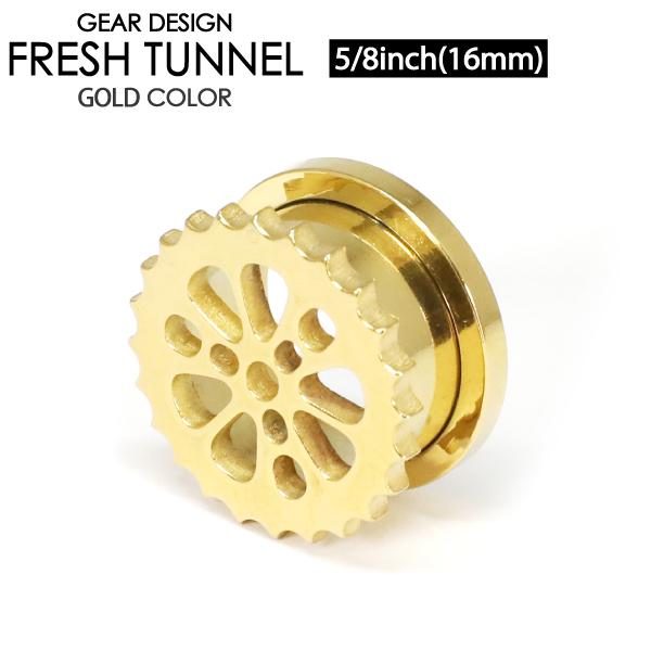 フレッシュトンネル ギア3-GD 5/8inch(16ミリ) ゴールド カラーコーティング サージカルステンレス デザイン ボディピアス ロブ 5/8インチ