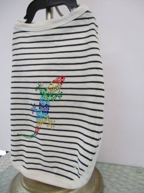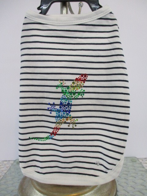 「DOG CAT 犬 猫 ペット 服 綿 ラメ スパンコール クリスタル ボーダー 白 黒 柄: トカゲ リザード オリジナル 限定 新品 未使用 サイズ: 3号 23」