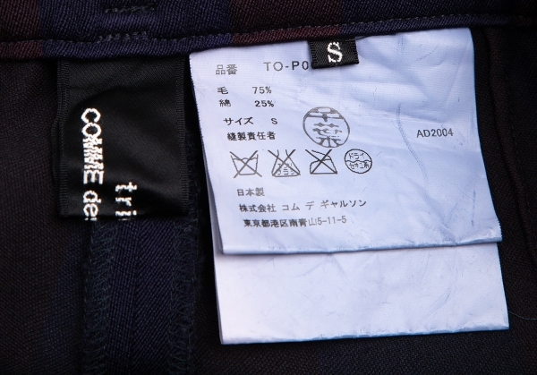 | トリココムデギャルソンtricot COMME des GARCONS 製品染めウールコットンストライプパンツ 紺茶S |