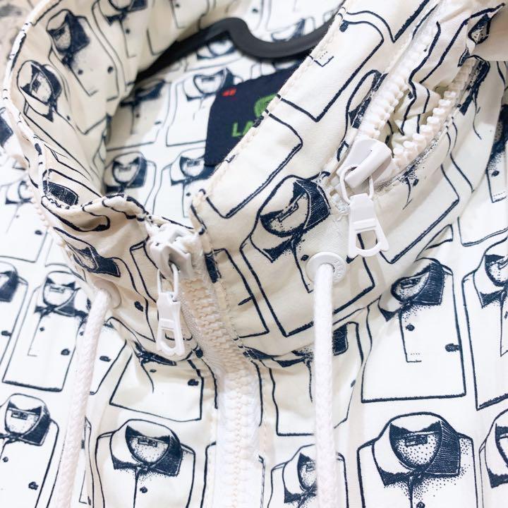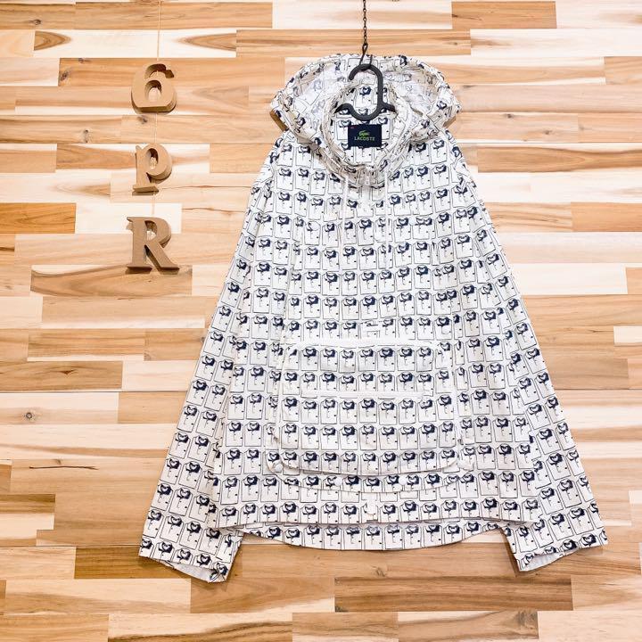 ブランドロゴ入りのポロシャツ柄を全体に並べた周囲の目を惹くデザイン。フロントのポケットパーツが取り外すことで違ったルックスを演出。遊び心にあふれた、オシャレなLACOSTEのパーカーです。フードも収納できるので気分に合わせて色々な着方が楽しめます。※LGスタイラーにて除菌リフレッシュ・スチームクリーニング済みです。