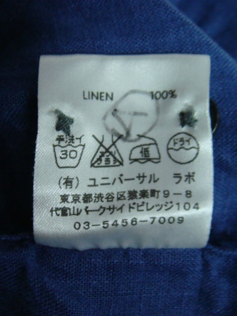 | 【使用感強め】SOUTIENCOL スティアンコル 麻100% 長袖プルオーバーシャツ ネイビー (size2) | |||||||||||