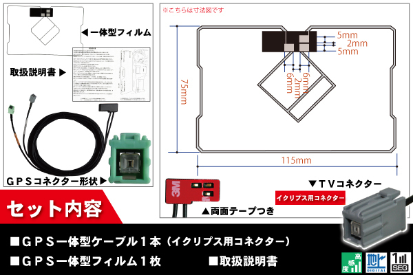 ~メール便発送可能!最新GPS一体型フィルムアンテナ&ケーブルセット~ 商品名:イクリプス製ナビAVN1120用GPS一体型フィルムアンテナ&ケーブル1本セット 適合型式: イクリプス AVN1120 最適な電波状態を保つため、ナビ型式別に電気的な調整を施しています。 上記適合型式以外での使用の場合、お問い合わせください。 商品番号:GF2R0AVN1120 適合コネクター:イクリプス専用コネクター イクリプス純正型番DTVF01と同等商品となります 弊社提携工場での製造のため、品質を落とさず、価格を極限まで落とすことに成功しました。 純正品ではありませんが、専門家監修により作成された製品ですので、御安心ください。 ブースター内蔵型で独自に最適なアンテナゲインを調整しています。 フィルムアンテナはエレメント部分だけ残るタイプを採用。 商品を厚紙に挟み、曲がらないように発送します。 ワンセグからフルセグまで、地デジに対応した機器の外部アンテナとしてご使用いただけます。 取付形状をよくご確認の上、お買い求めください。 ブースター内蔵型ケーブルの長さは約5mです。 大量購入をご希望の方は質問よりお問い合わせください。 よろしければこちらもご利用ください。 フィルムアンテナ https://store.shopping.yahoo.co.jp/tns/tns-film.html アンテナケーブル https://store.shopping.yahoo.co.jp/tns/tns-antena.html GPSアンテナ https://store.shopping.yahoo.co.jp/tns/tns-gps.html GPSプレート https://store.shopping.yahoo.co.jp/tns/tns-p-t.html 両面テープ https://store.shopping.yahoo.co.jp/tns/tns-ryomen.html GPSフィルムアンテナ https://store.shopping.yahoo.co.jp/tns/tns-g-f.html | ||