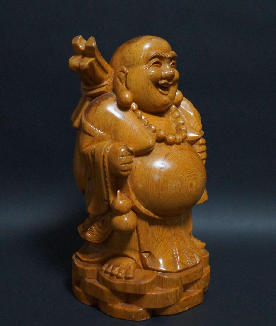 老松 細工彫り『布袋様』木彫り置物 オブジェ 一刀彫り 縁起物 高さ30cm★時代物★7D0404 サイズ(約): 幅12.2㎝、奥行11.5㎝、高さ24㎝、重さ1.2kg |