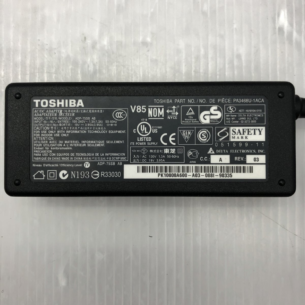 | 商品と付属品について | 型番:ADP-75SB AB・PA1750-04・PA3715U-1ACA・PA5034U-1ACA (上記の内の型番商品が入っておりますが他型番商品もあることがございます) 個数:5個 付属ケーブル:ー 出力:100V?240V 入力:19V 3.95A ※簡易清掃のみとなっております。傷や汚れ等はございますのでご了承ください。 ※商品状態につきましては、錆・通常使用に問題の無い被膜破れがある場合がございます。 ※適応機種につきましてお客様にてご確認お願い致します。 ※動作不良や充電不可などの初期不良を除き、お客様のご都合による返品はご遠慮いただいております。 |
