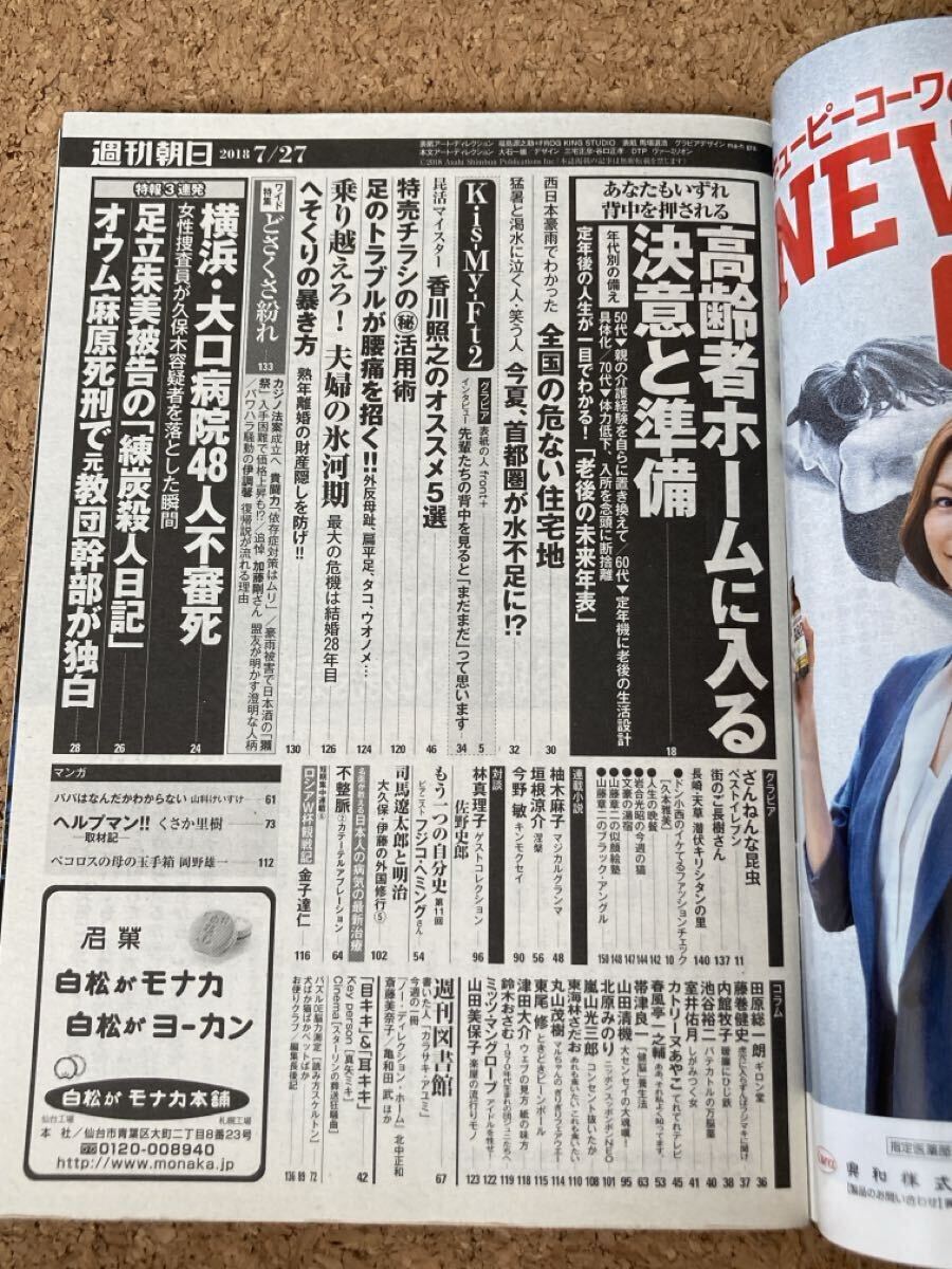週刊朝日 2018.7.27 Kis-My-Ft2 ざんねんな昆虫たち 高齢者ホームに入る決意と準備 麻原彰晃 足立朱美 香川照之 街のご長樹さん キリシタン | |||||||||||||||||||