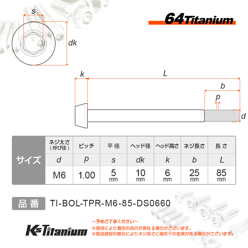 64チタン製テーパーボルト M6×85 スレッド25mm ピッチ:1.0 スレッド長:25 のチタンボルトです。| 出价者 | 信用 | 价格 | 时间 |