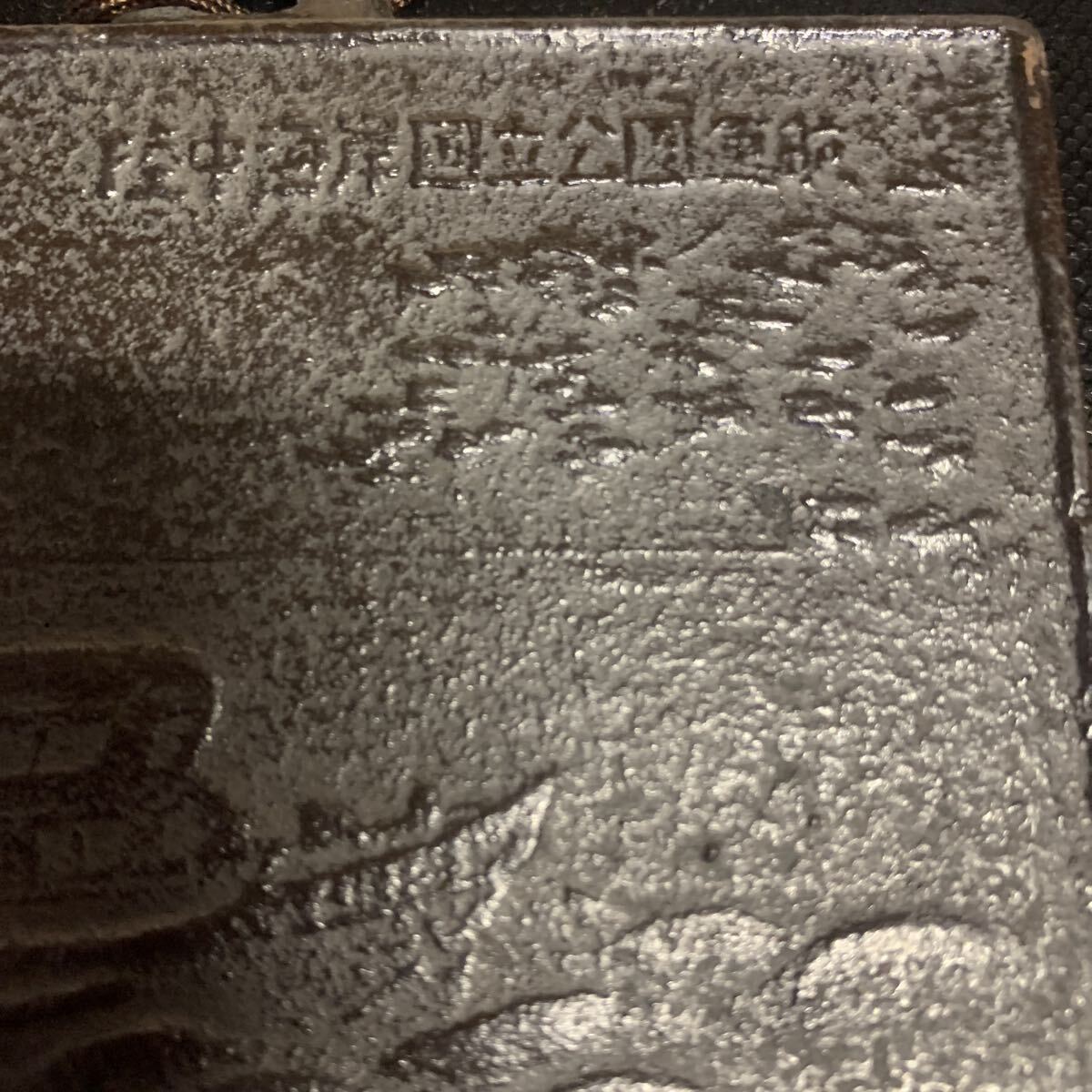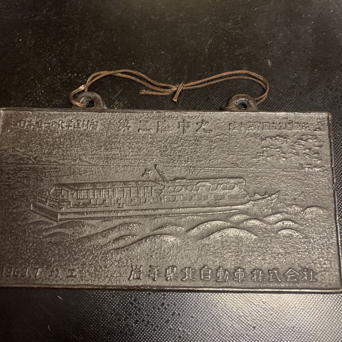 縦約10.5センチ、横約20.5センチ、南部鉄器の記念のプレートになります。重さ約800グラム、ノークライムノーリターンでお願いします。