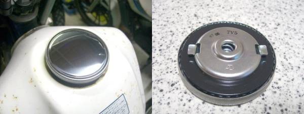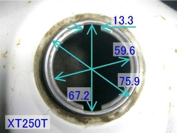 ・【図1赤枠】のヤマハ純正タンクキャップになります。メッキ光沢仕上げ、キー無しタイプになります。 ・1969年のDS6用の内径60mm、大口径用タンクキャップになりますが、以後のヤマハ車の多くのタンクにピッタリ合います。 ・図3のタンク側寸法で内径60mm、大口径のタンクに装着できます。 ・XT250T、TW200、DT125R、DT200Rなど多くの車種に使用できますが、使用に当たってはタンク側寸法を確認し、自己責任でご使用ください。こちらで適合の保証はできません。 ・旧車のキャップですので、1980年代以降のキャップ構造と違いガソリン吹きこぼれ防止弁などがありませんので、タンクに満タンまでガソリンを入れますとにじみこぼれてくることがありますので、若干少なめにガソリンを入れてください。 【互換・適合機種】下記は参考です。必ず寸法を確認ください。 DS6 1969-1970 DS7 1972 R3 1969 R5 1970-1972 TD2 1970-1971 YA6 1964-1966 YCS1 1968 YM2 1967 YR1 1967-1968 XT250T TW200 DT125R、DT200R 【関連商品】 ★商品を出品中。落札で同梱いたします。下記価格は参考価格。 【内径41mm系】通常一般サイズ用 ①122-24610-01 キヤツプアセンブリ メッキ、キー無 ②127-24650-02 キヤツプアセンブリ メッキ、キー・シャッター付 ③3FU-24650-11 キヤツプアセンブリ 黒樹脂、キー・シャッター付 4L0-24610-01代替11H-24602-10 キヤツプアセンブリ RZ250・350用 【内径60mm系】XT250TTW200等大口径サイズ用 ④7V5-24610-01 キヤツプアセンブリ メッキ、キー無し | |