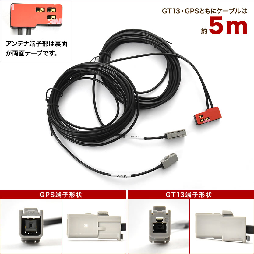 | 内容 | アンテナケーブル(GT13側ケーブル約5m・GPS側ケーブル約5m)×1、GPS一体型フィルムアンテナ×1、ケーブルクリップ×4 |