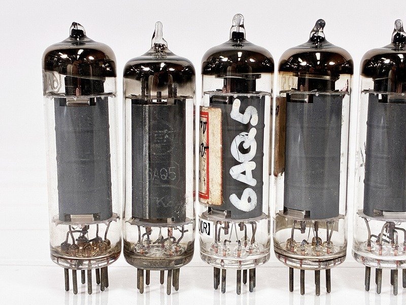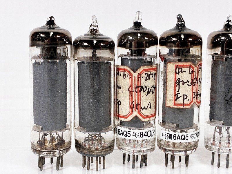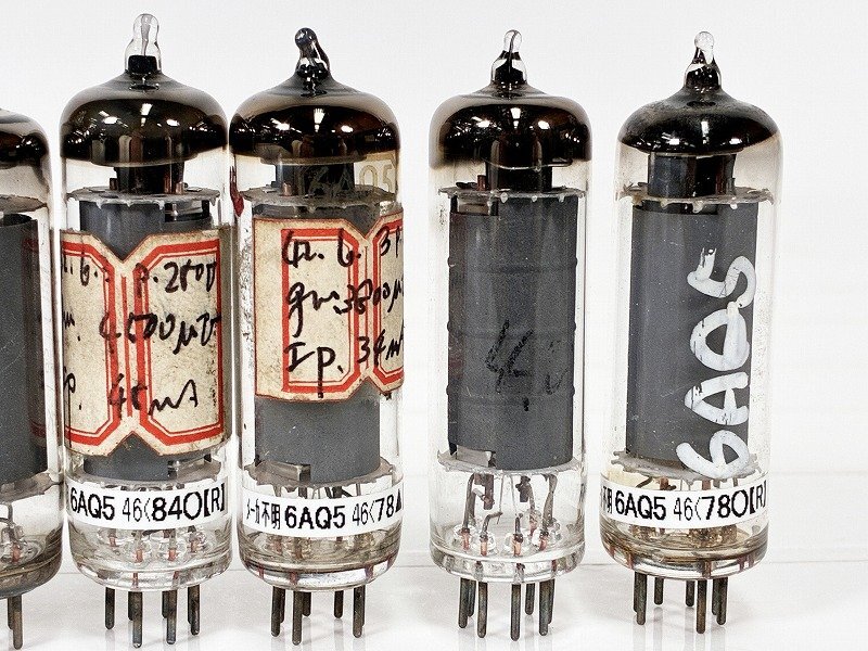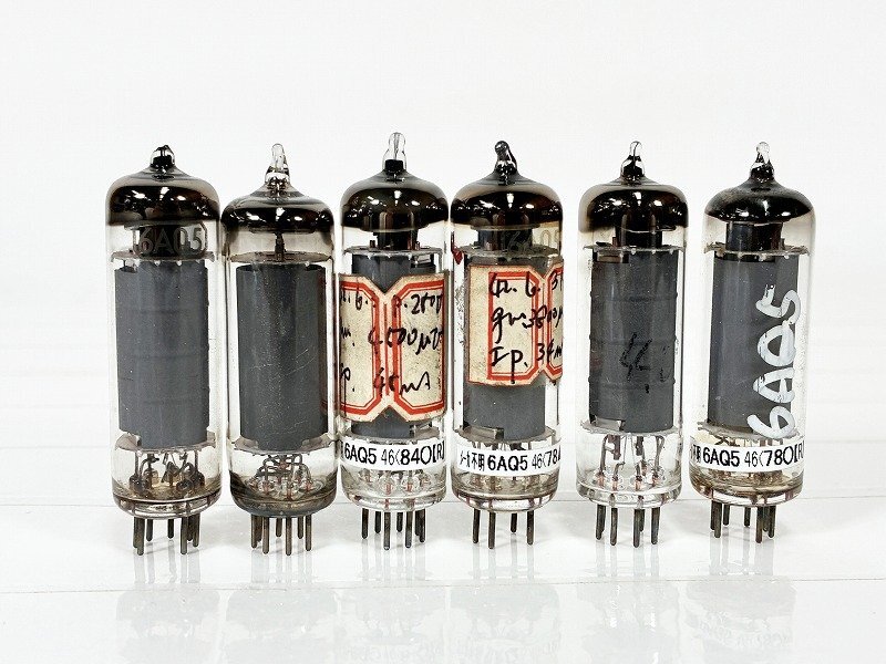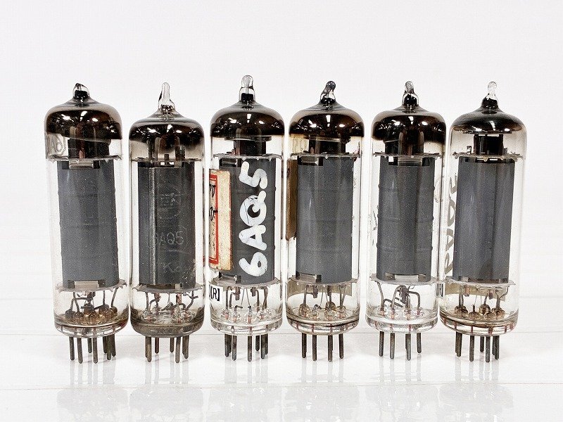 TEN etc 6AQ5 6本です。 チューブテスターでチェック済品。 定格46に対して、85、86、68、64、87、50です。 |