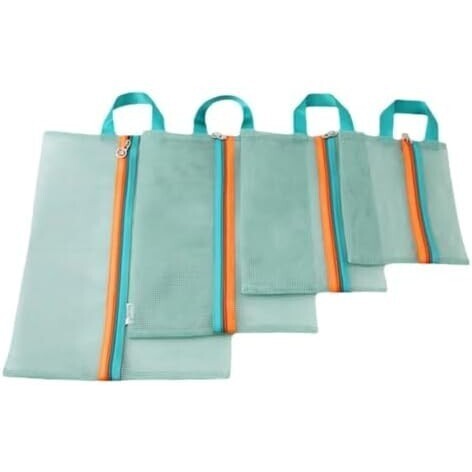 ミントブルー メッシュポーチ 4点セット トラベルポーチ 収納 整理バッグ 吊り下げ バイカラー 旅行 (ミントブルー)
